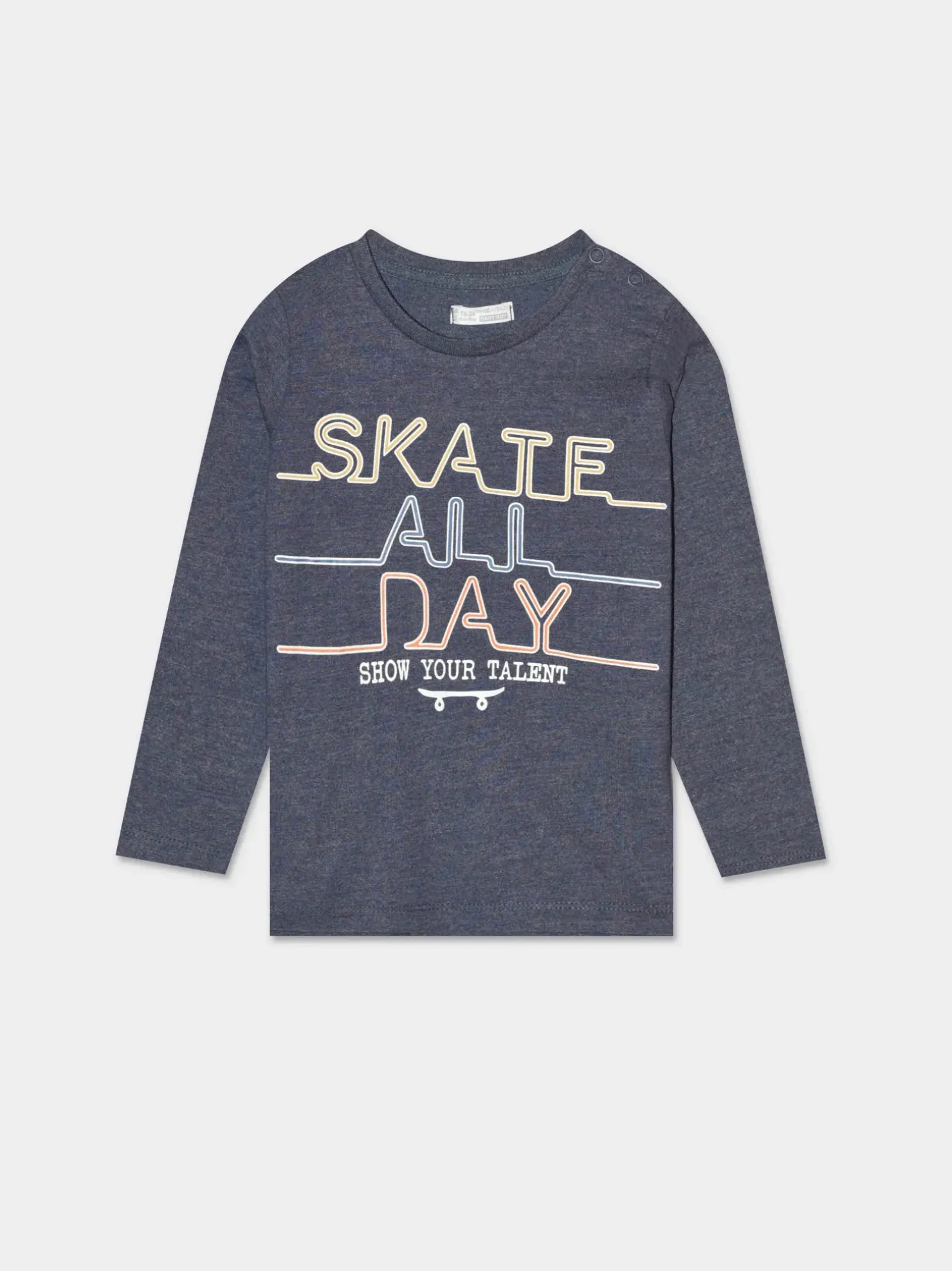 Piazza Italia Maglia a manica lunga in jesrey con stampa tema skate per uno stile street – Blu Discount