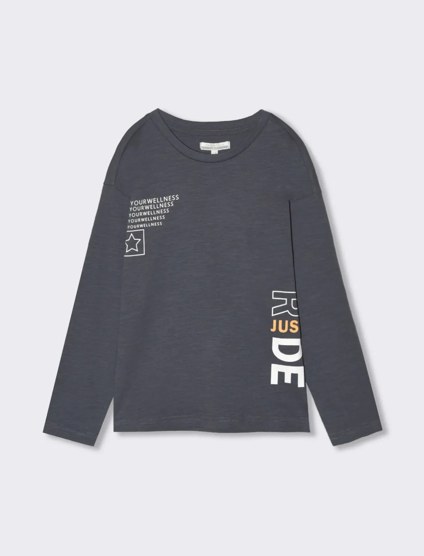 Maglia a maniche lunghe realizzata in morbido jersey fiammato, ideale per il tempo libero. La sua stampa frontale aggiunge un tocco di originalità, rendendola perfetta per abbinamenti casual. Disponibile in quattro colori, offre versatilità e stile per ogni occasione. La composizione leggera garantisce comfort e traspirabilità, rendendola una scelta perfetta per le giornate più fresche. Un capo essenziale da avere nel proprio guardaroba. Il prodotto è di colore Blu
