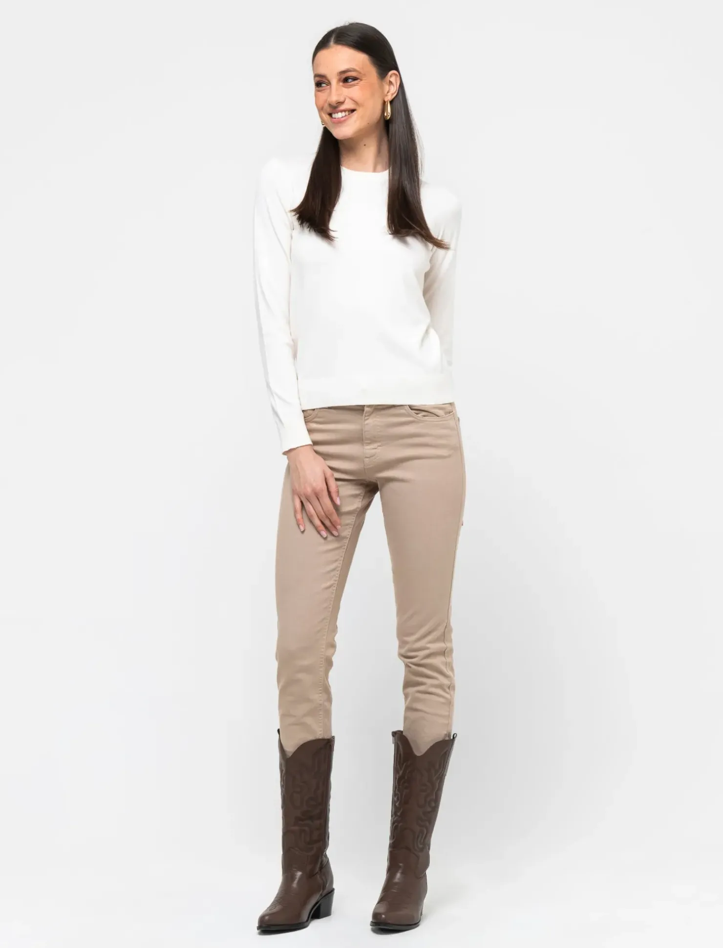 Maglia basic modello girocollo donna, realizzata in morbida maglia fine per garantire comfort e praticità. Disponibile in una vasta gamma di colori, perfetta per ogni occasione e facile da abbinare. Un capo essenziale nel guardaroba di ogni donna, ideale per creare outfit casual ma sempre alla moda. Il prodotto è di colore Avorio