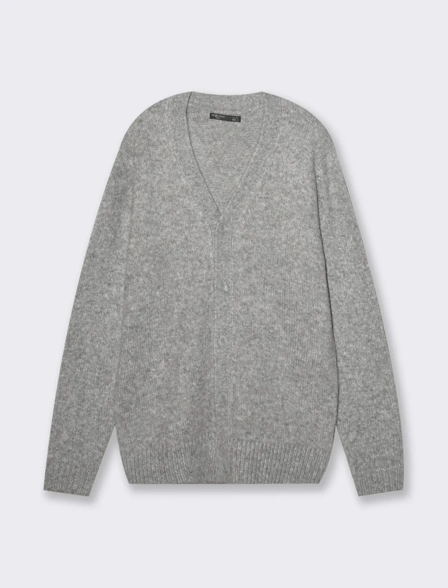 Maglia cardigan effetto lana, ideale per l’uomo che cerca comfort e stile. Questo capo presenta un taglio regular fit che si adatta perfettamente a diverse silhouette. La costina al collo, ai polsi e al fondo conferisce un tocco di eleganza, mentre la chiusura frontale con bottoni offre praticità e versatilità. Perfetto per le giornate più fresche, può essere indossato sopra una camicia o una t-shirt, rendendolo un must-have per ogni guardaroba maschile. Il prodotto è di colore Grigio mel.