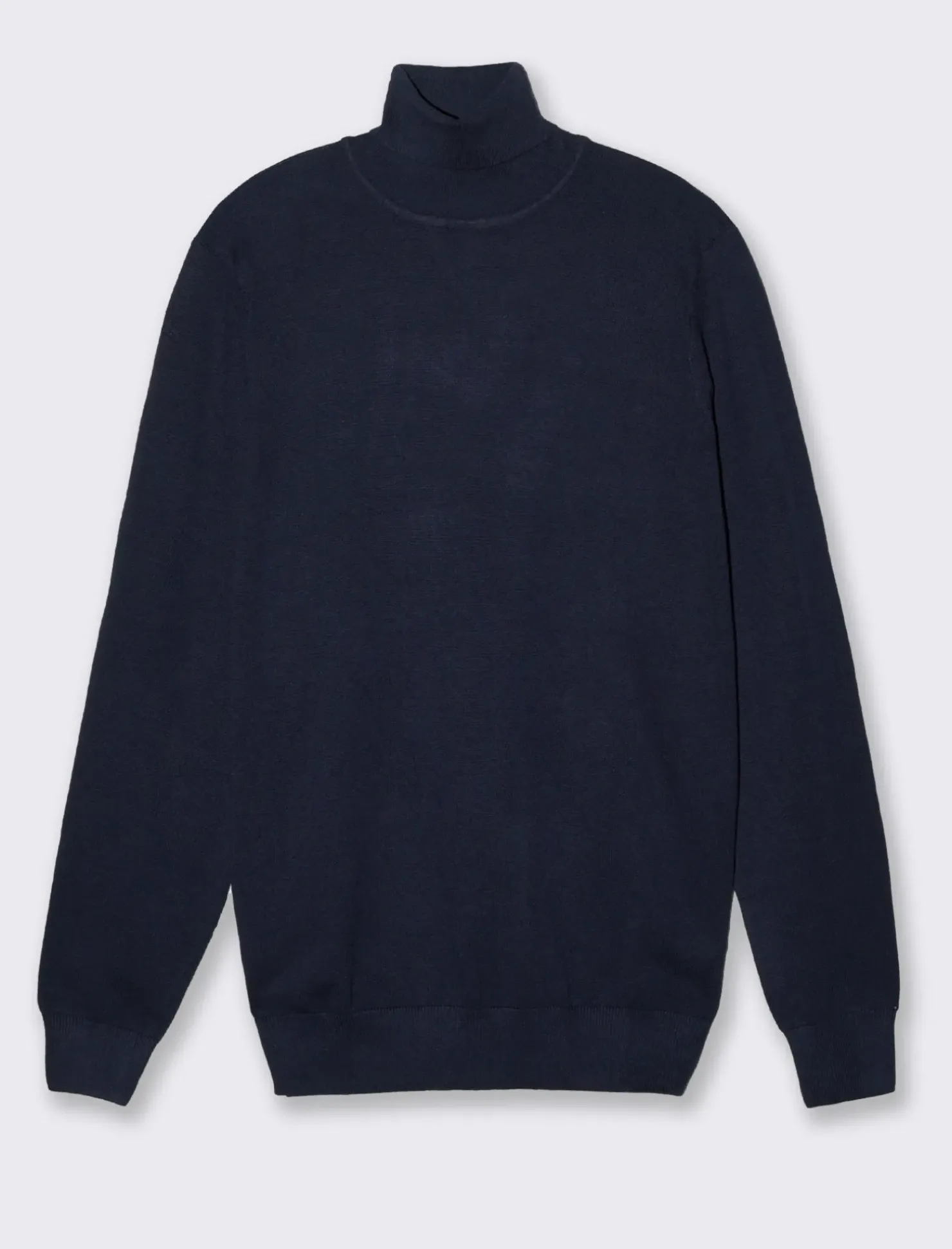 Piazza Italia Maglia collo alto in misto viscosa premium regular fit – Blu 0 Best Sale