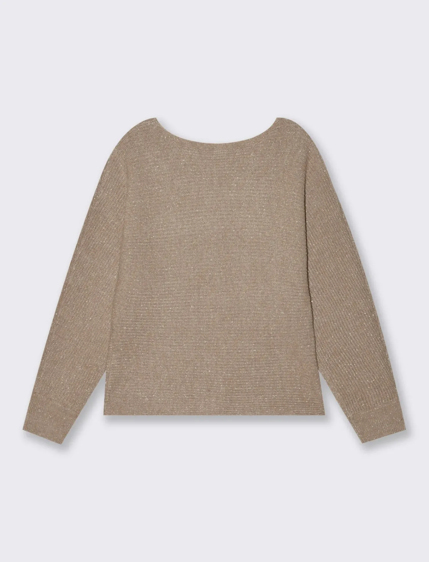 Piazza Italia Maglia con filo effetto metallizzato paricollo e manica a pipistrello – Cammello Beige New