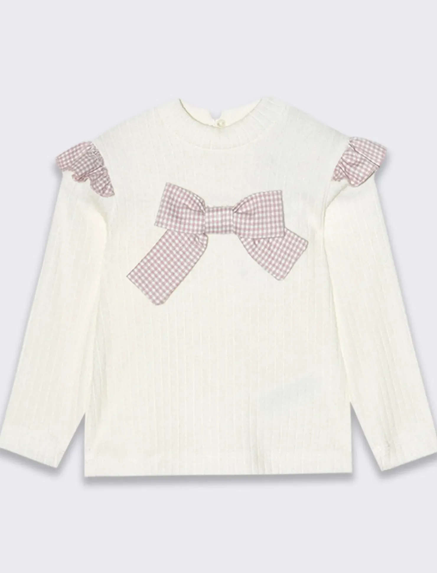 Maglia manica lunga colletto alto, con inserti in tessuto a contrasto e grande fiocco applicato Il prodotto è di colore Bianco