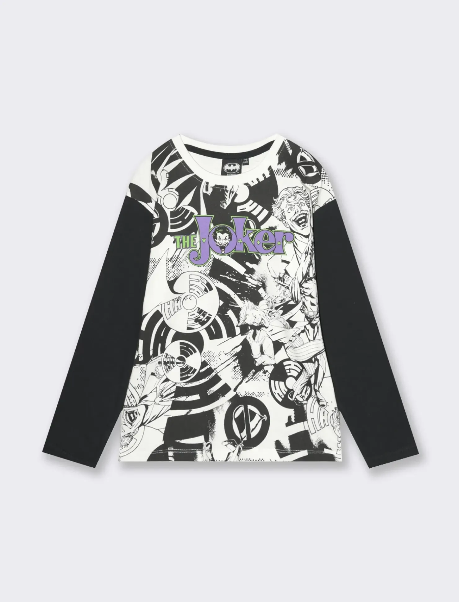 Piazza Italia Maglia con manica in contrasto, stampata con personaggio the Joker da bambino – Nero Best