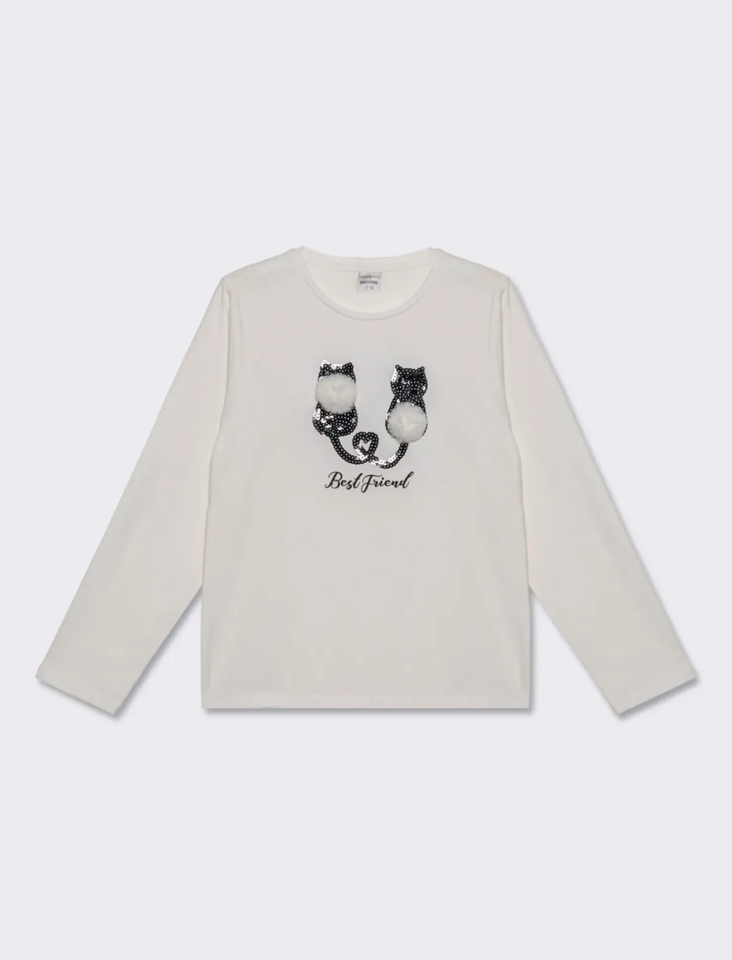 Maglia manica lunga in morbido cotone, perfetta per le giornate fresche. Con un’originale applicazione sul davanti, arricchita da paillettes, pon pon e una divertente stampa. Ideale per le bambine che amano uno stile allegro e colorato. Un capo comodo e alla moda, perfetto per ogni occasione. Il prodotto è di colore Bianco sporco