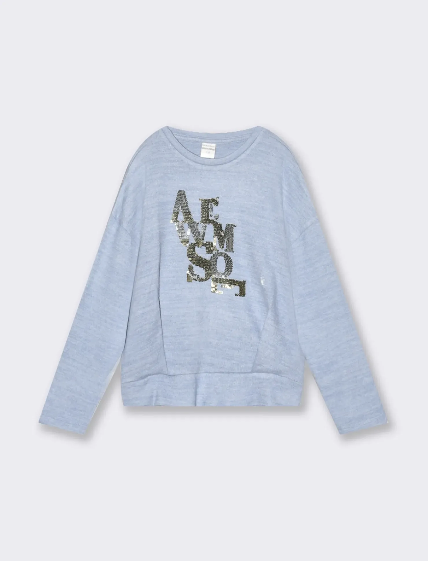Maglieria morbida con lavorazione in paillettes per bambine: una maglia da bambina realizzata in tessuto morbido e caldo al tatto. Il modello presenta pieghe e un bordo al fondo, mentre le paillettes reversibili creano un effetto brillante e ricercato. Il prodotto è di colore Azzurro