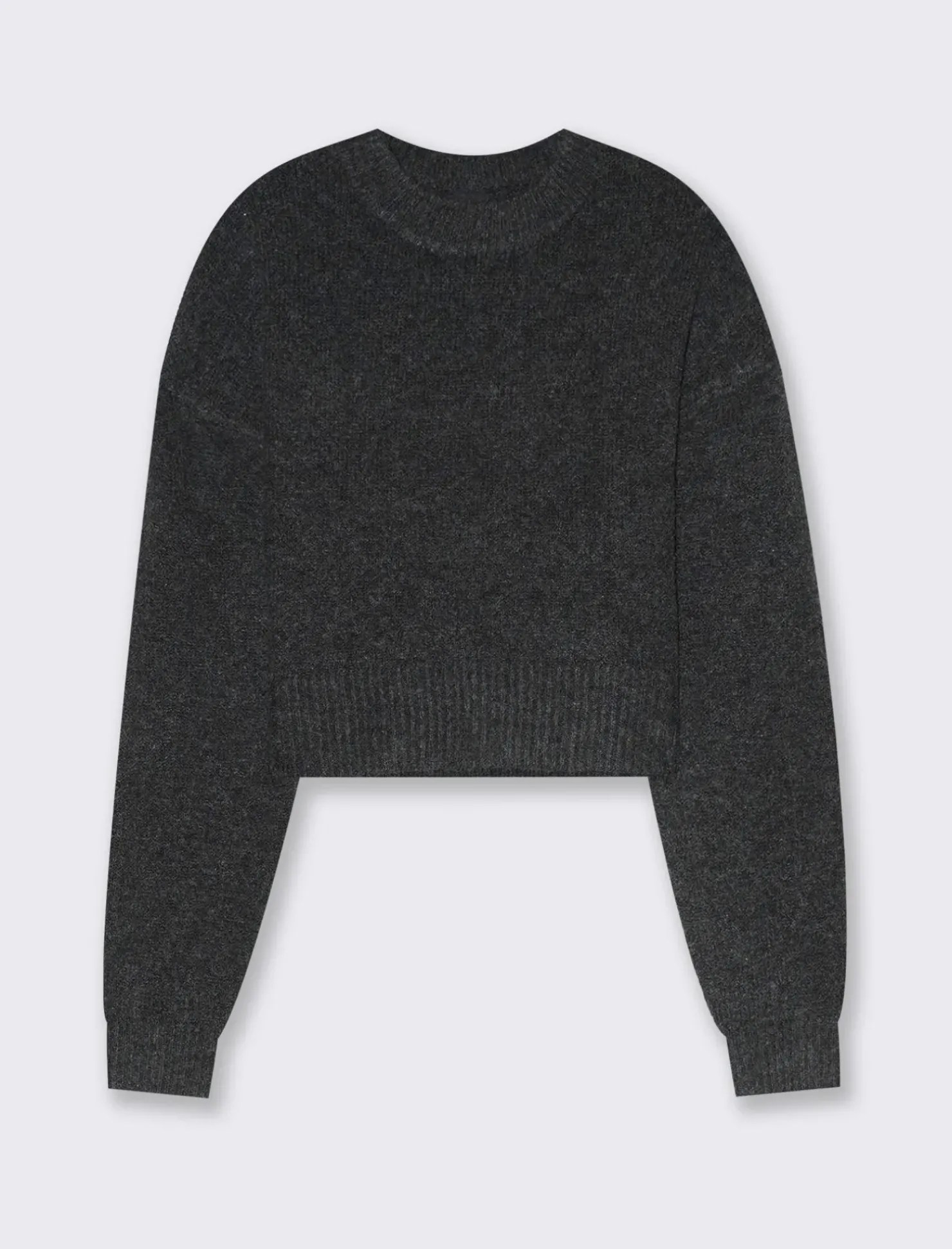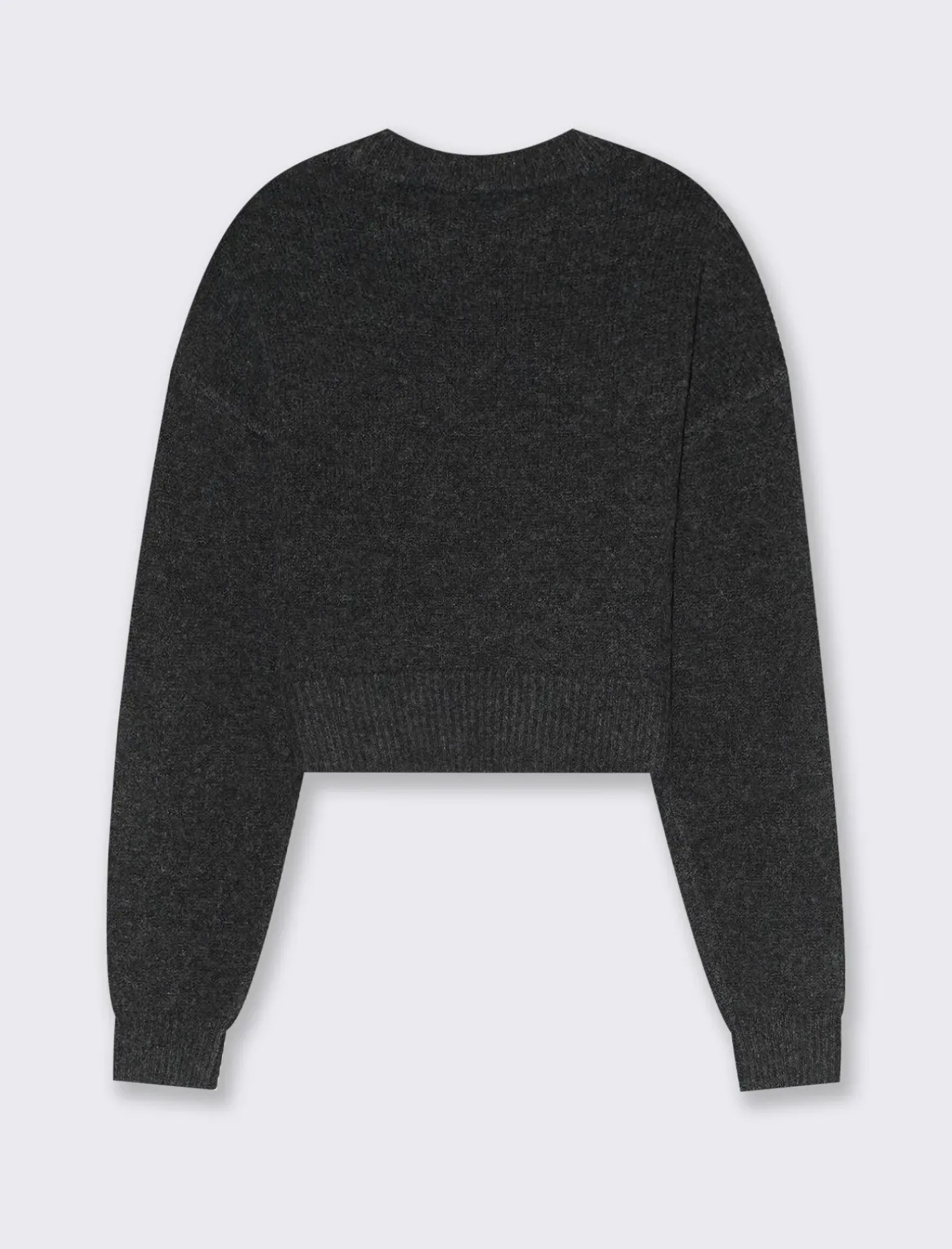 Piazza Italia Maglia crop manica lunga giro collo con spalla a T – Antracite melange Grigio New