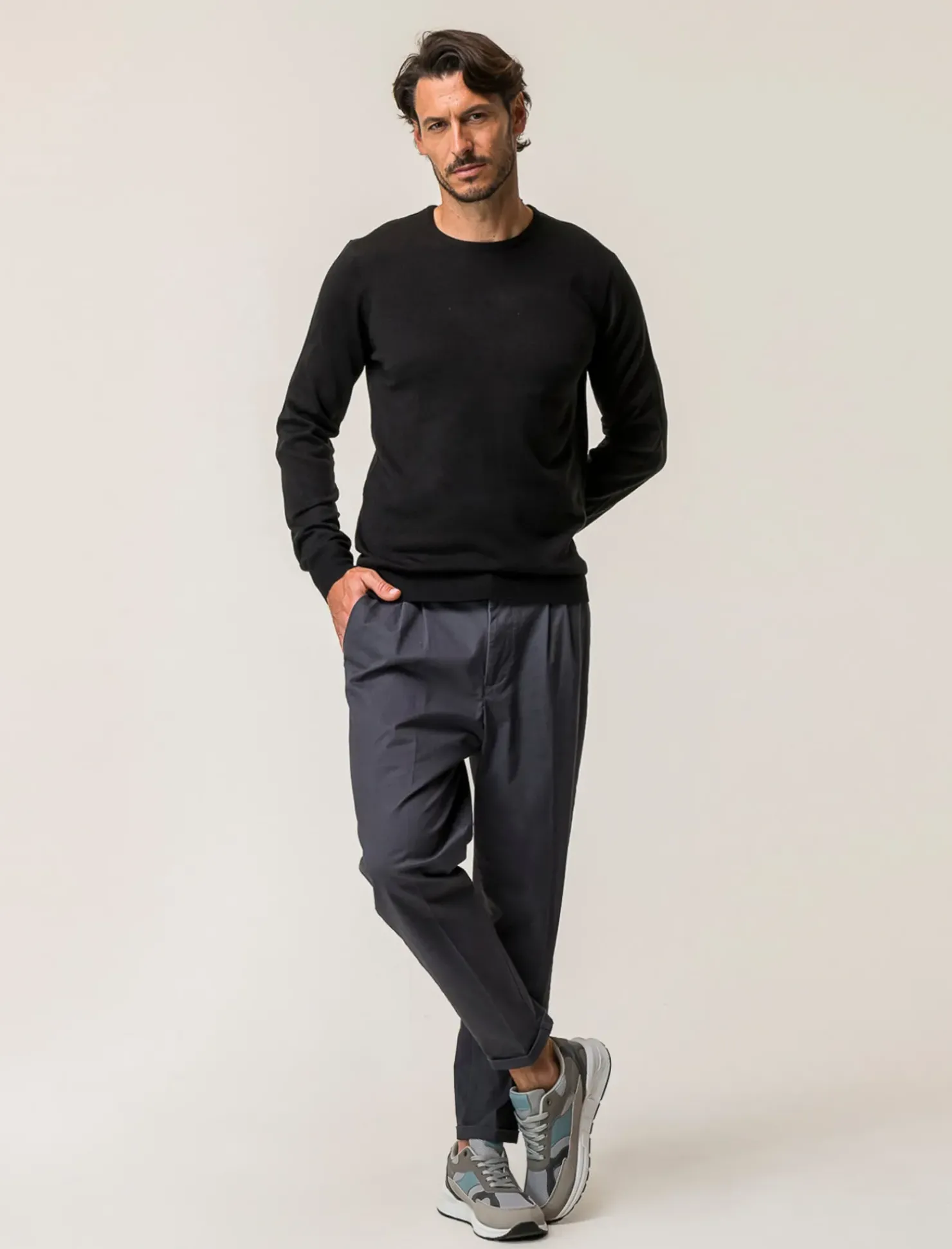 La maglia girocollo basic regular fit è un capo essenziale nel guardaroba di ogni uomo. Realizzata con costine al collo, ai polsi e al fondo, garantisce un comfort e una vestibilità perfetti in ogni occasione. Ideale da indossare da sola o sotto una giacca per un look casual ma curato. Il prodotto è di colore Nero