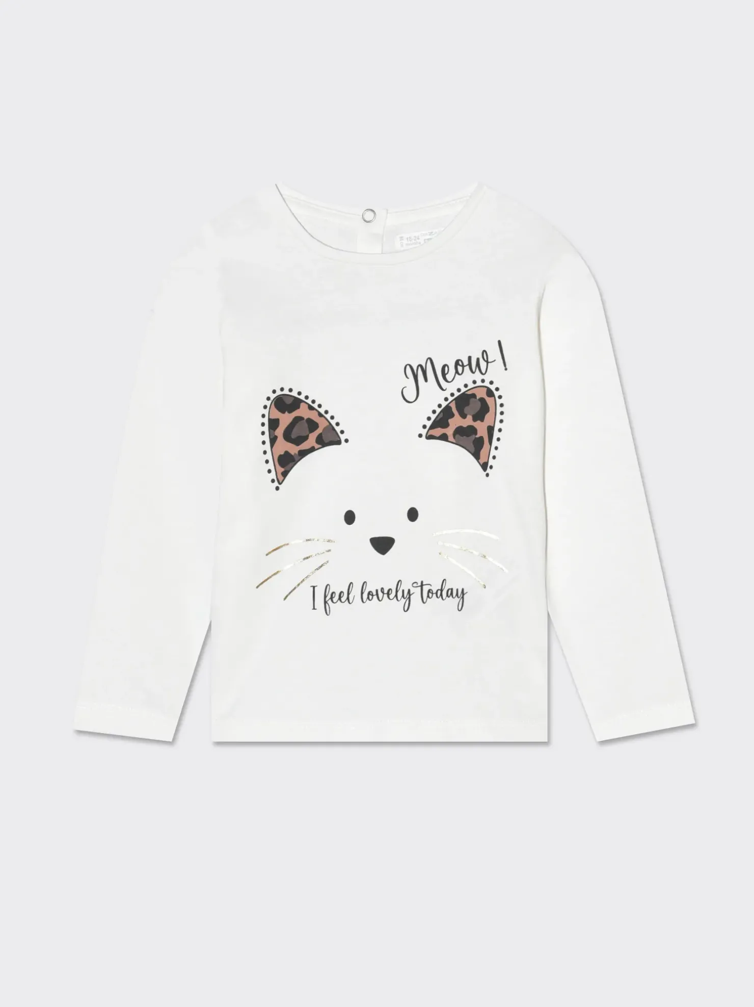 Piazza Italia Maglia girocollo con stampa sul davanti in 3 varianti colore – panna Bianco Flash Sale