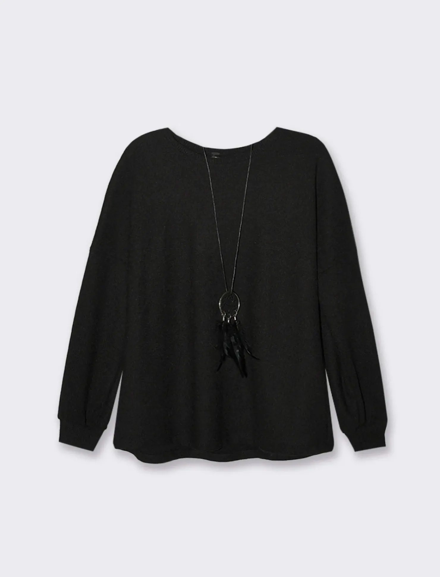 Piazza Italia Maglia girocollo con tessuto a coste – Nero New