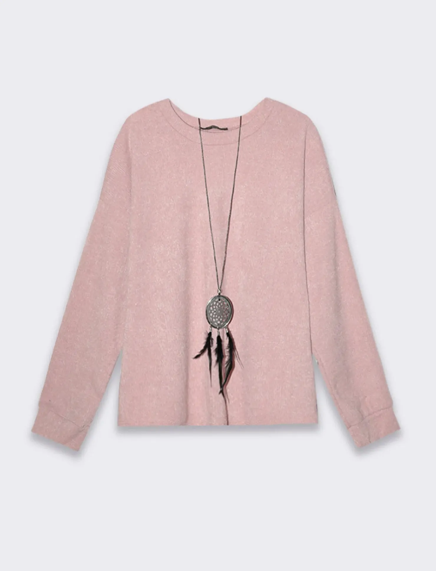 Maglia girocollo con tessuto a coste Il prodotto è di colore Rosa