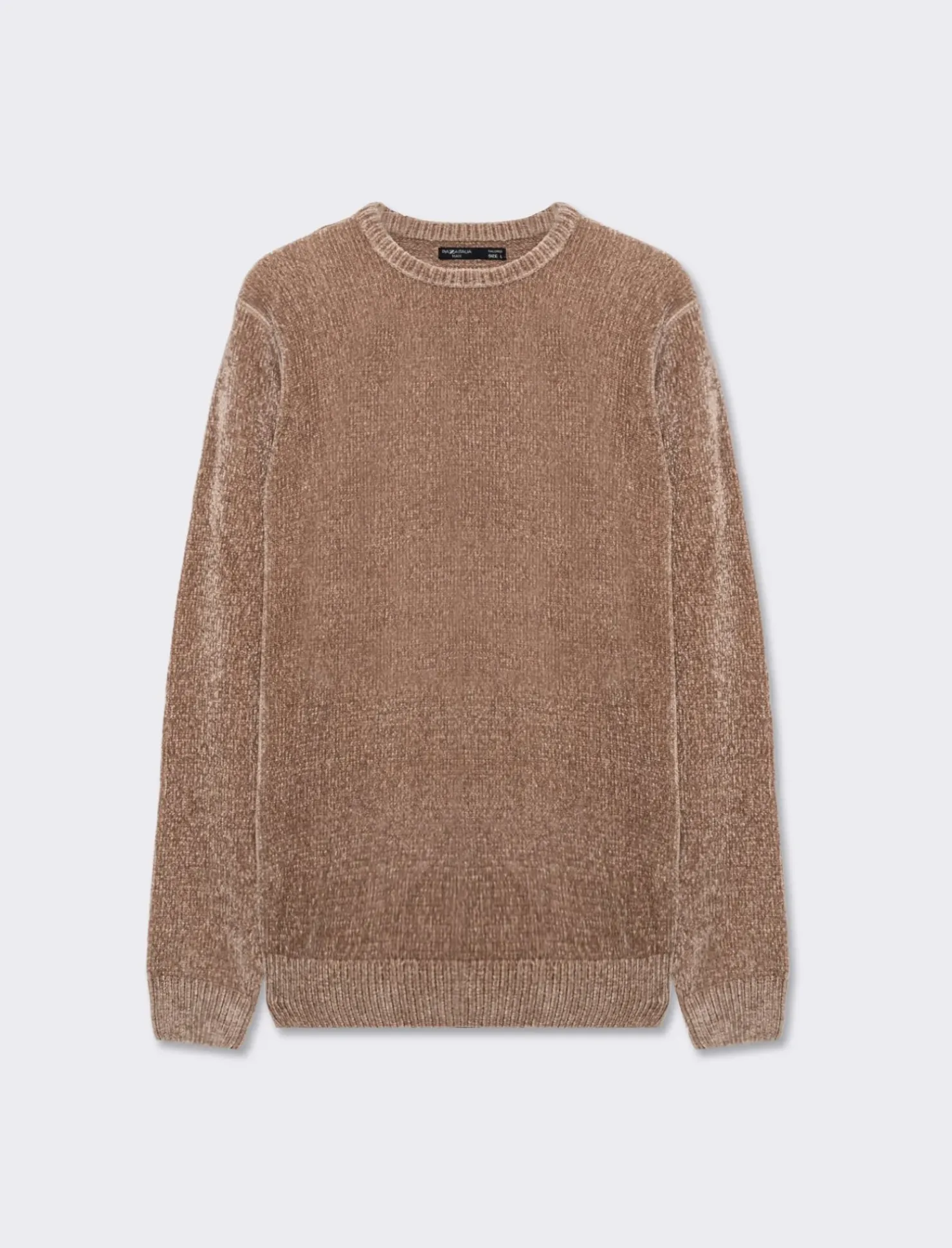 Piazza Italia Maglia girocollo in ciniglia regular fit con costina al collo, ai polsi e al fondo – tortora Grigio New