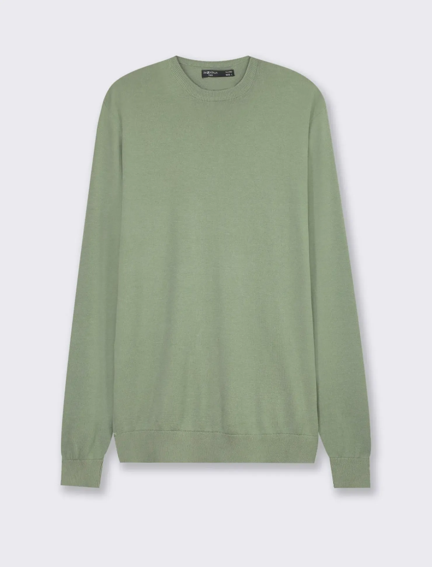 Piazza Italia Maglia girocollo in puro cotone premium con costina al collo, ai polsi e al fondo – salvia Verde Fashion