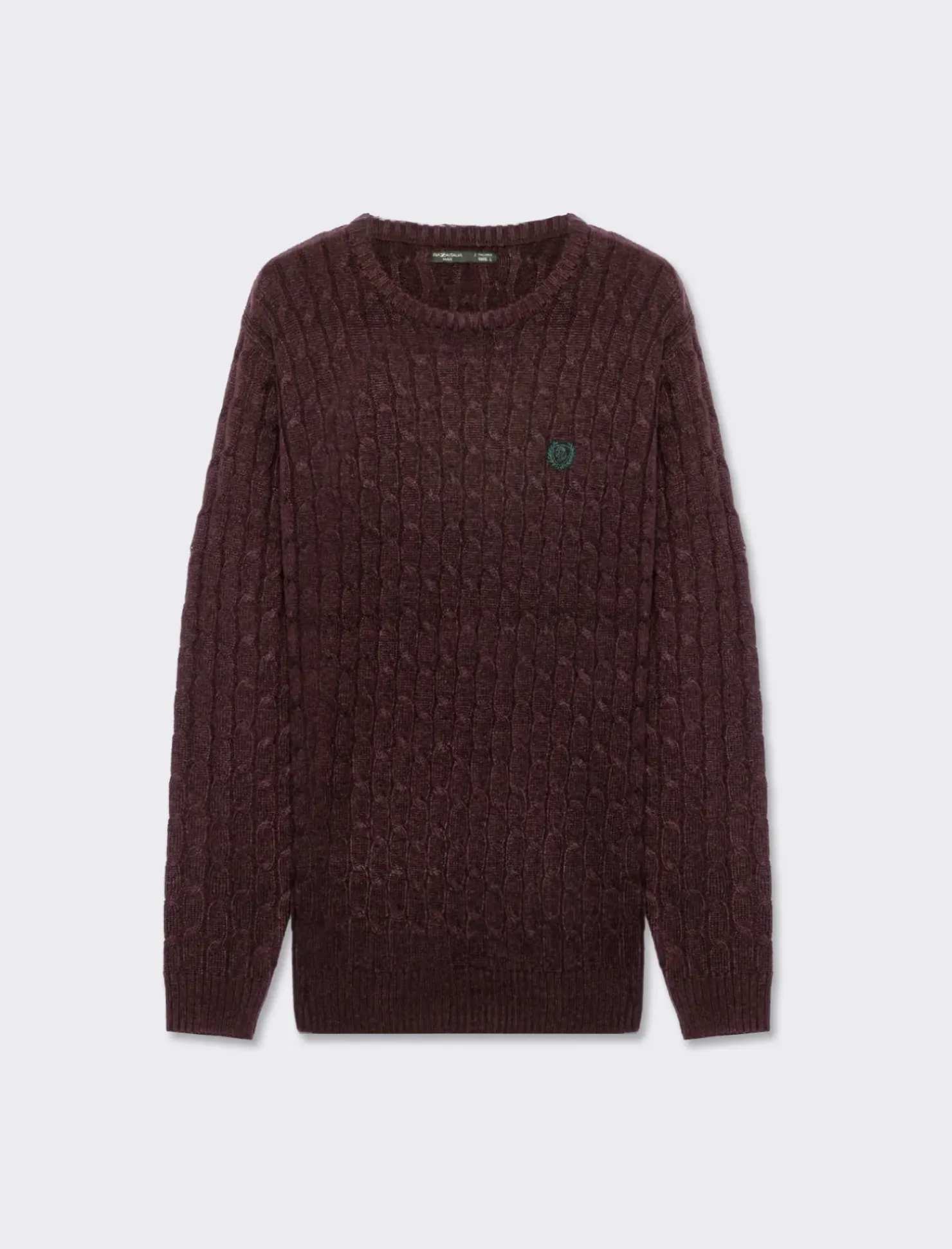 Piazza Italia Maglia girocollo lavorazione a trecce con ricamo sul petto, regular fit – Bordeaux Rosso Shop