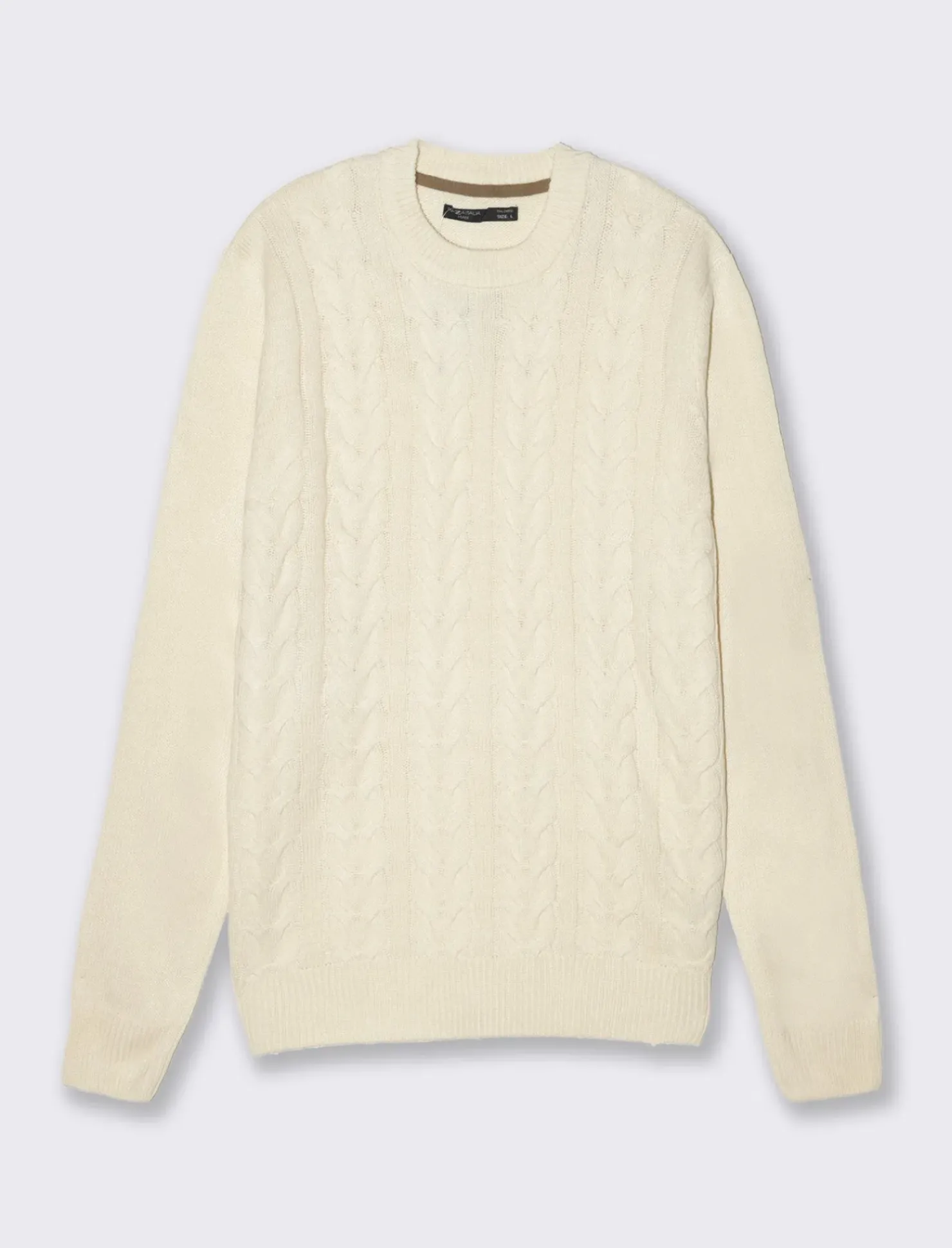 Piazza Italia Maglia girocollo lavorazione a trecce regular fit con costine – Bianco latte Best