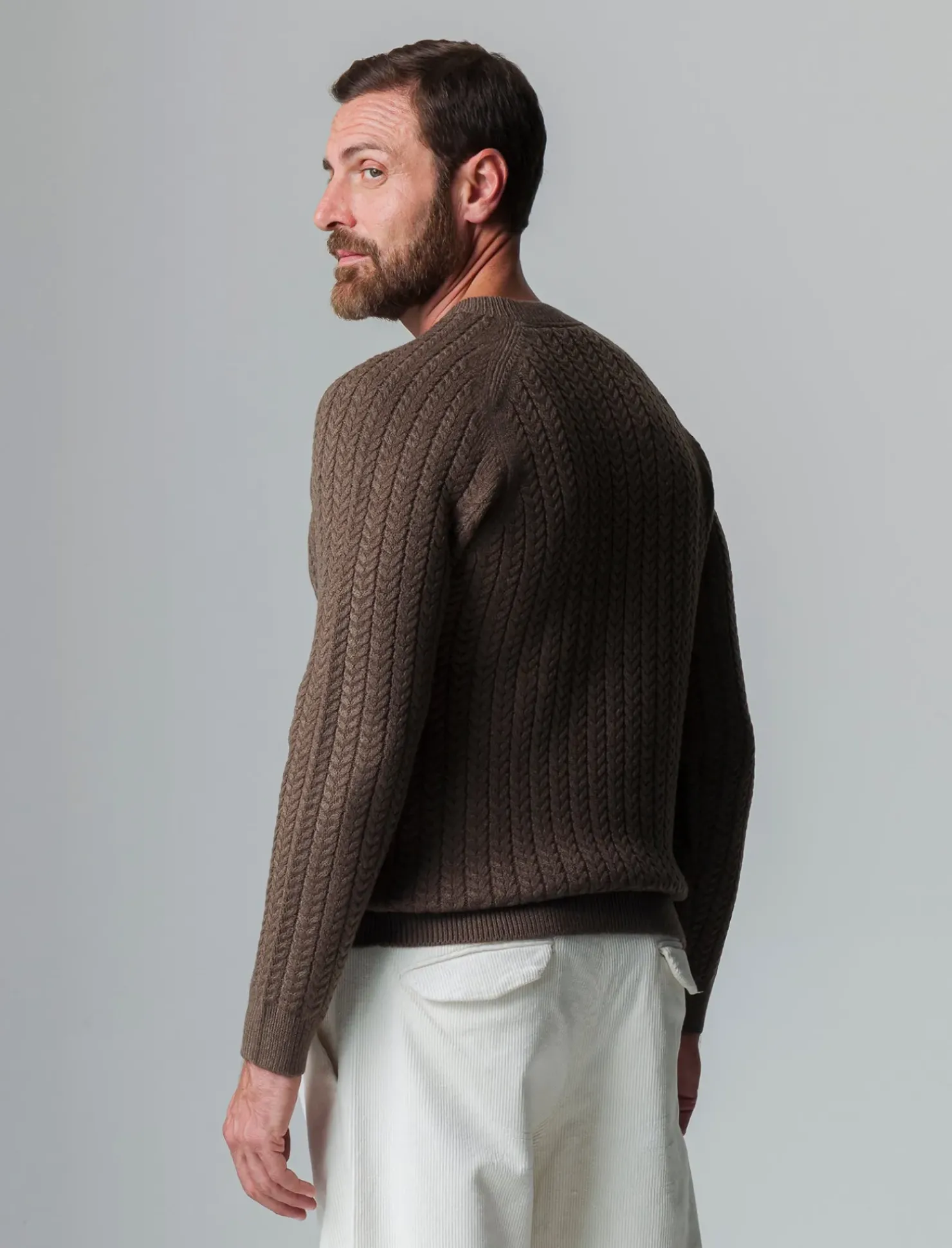 La maglia girocollo a trecce è un capo versatile e stiloso, perfetto per l’uomo moderno. Realizzata con una raffinata lavorazione jacquard, presenta un design a trecce che aggiunge un tocco di eleganza. La vestibilità regular fit garantisce comfort e libertà di movimento, mentre le maniche raglan offrono un’ottima adattabilità. Le coste al collo, ai polsi e al fondo conferiscono un aspetto curato e definito, rendendola ideale per ogni occasione, dal lavoro al tempo libero. Il prodotto è di colore Grigio fango