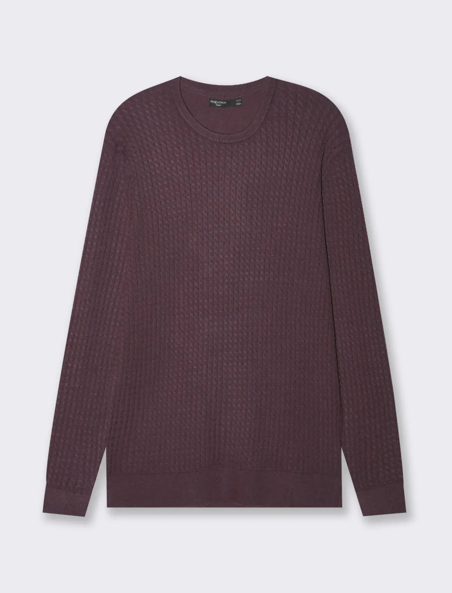 Piazza Italia Maglia girocollo lavorazione jacquard a treccine regular fit – Bordeaux Rosso Hot