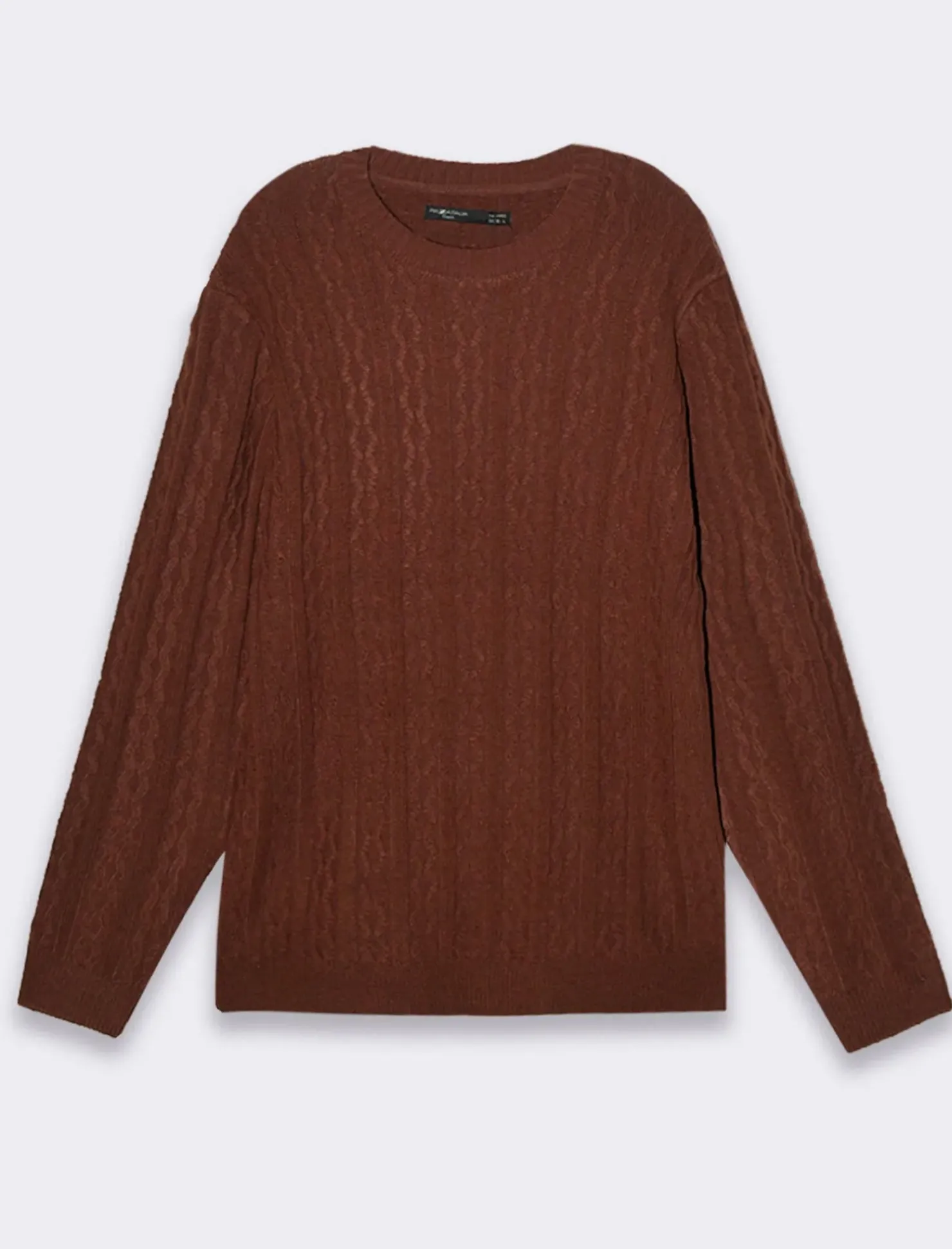 Piazza Italia Maglia girocollo lavorazione jacquard atrecce e coste regular fit – Moka Marrone Store
