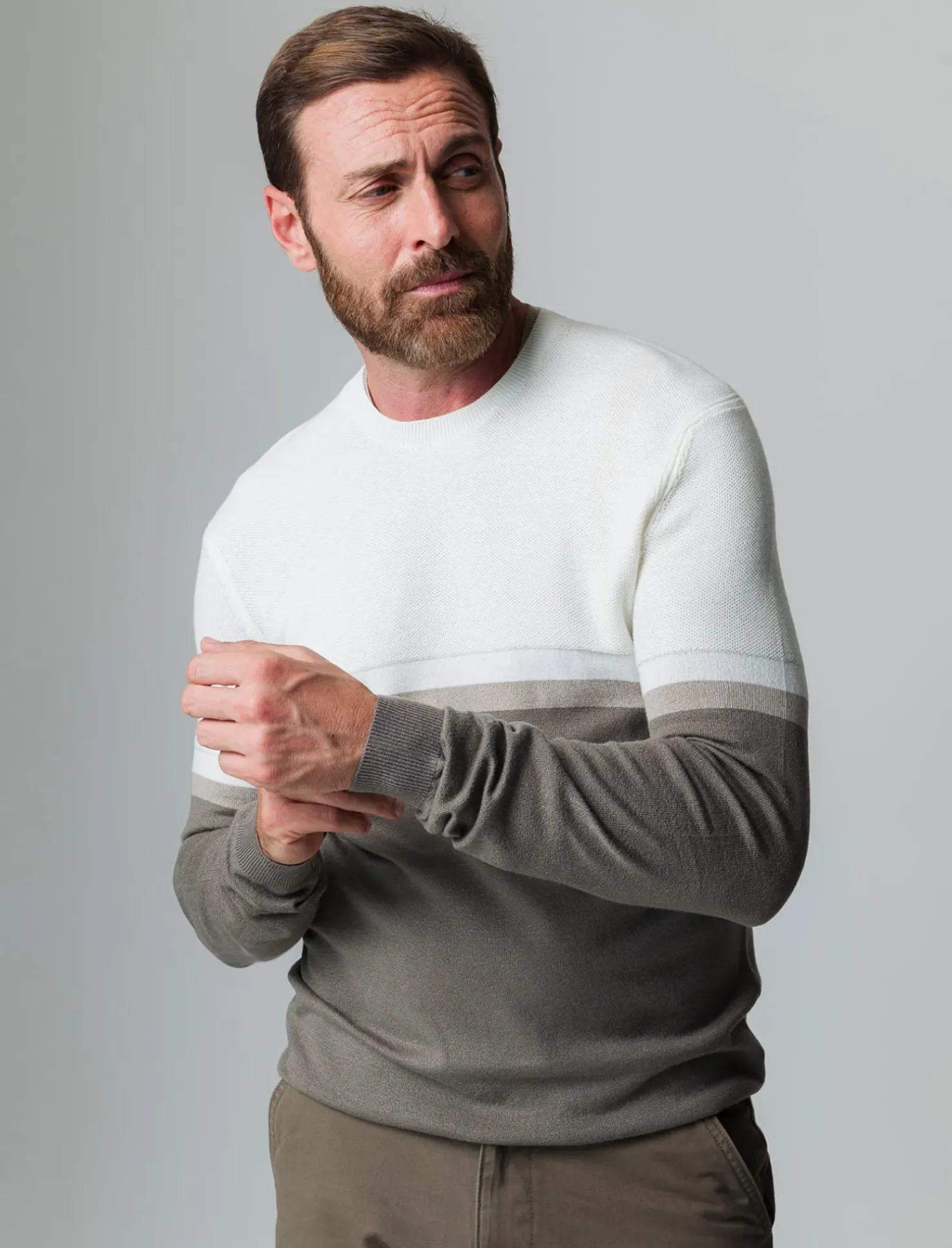Piazza Italia Maglia girocollo lavorazione jacquard fantasia a fasce, regular fit – fango Grigio Fashion