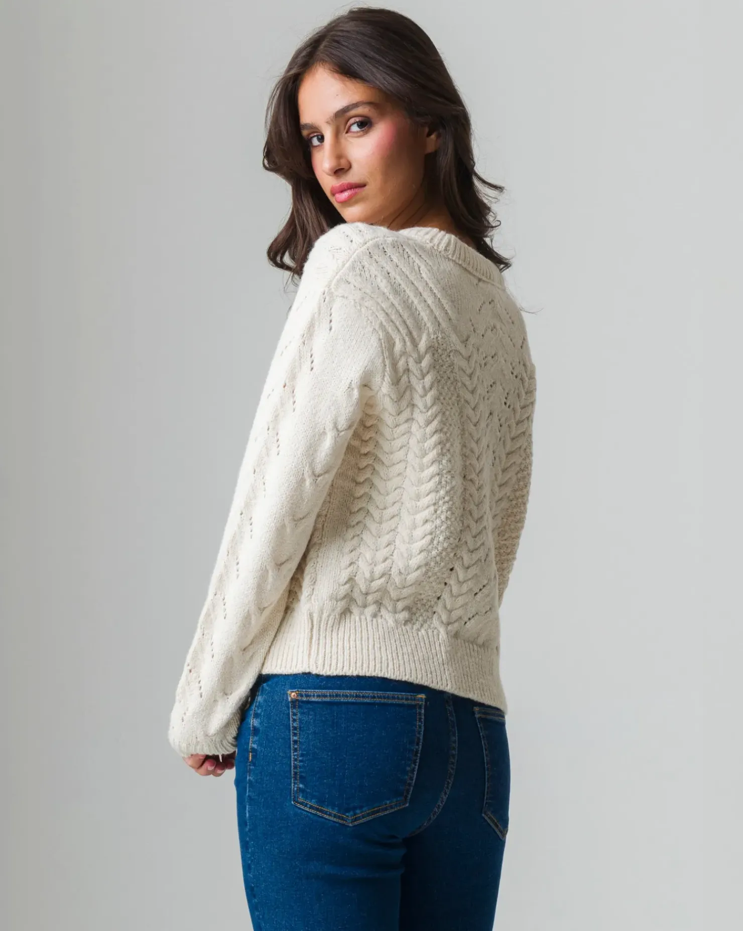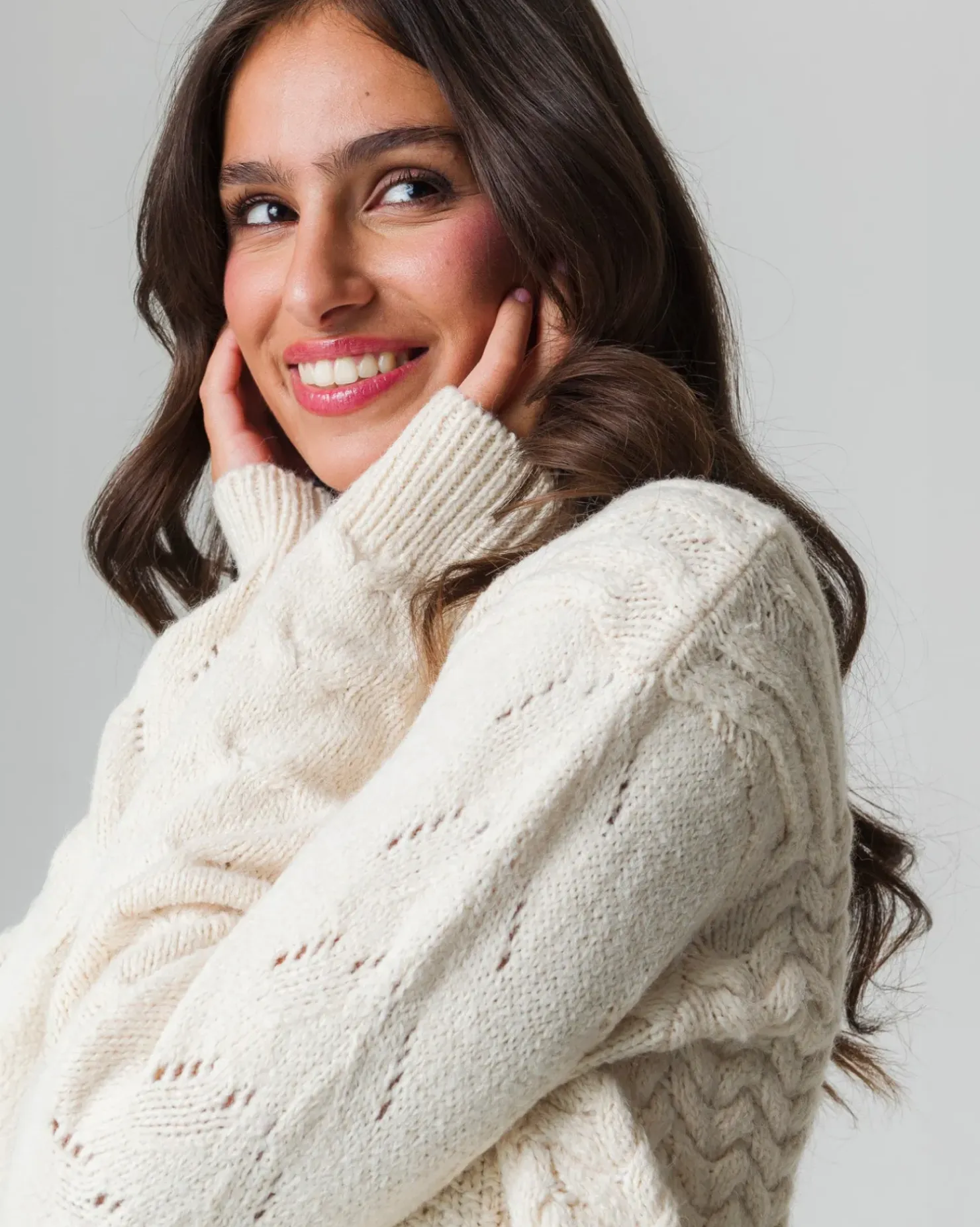 La maglia girocollo manica lunga per donna è un capo versatile e raffinato, ideale per ogni occasione. Realizzata con una lavorazione particolare, offre un comfort avvolgente e una vestibilità impeccabile. Il collo, i polsini e il fondo a costa elastica donano un tocco di eleganza, mentre la sua morbidezza la rende perfetta per le giornate più fresche. Il prodotto è di colore Avorio