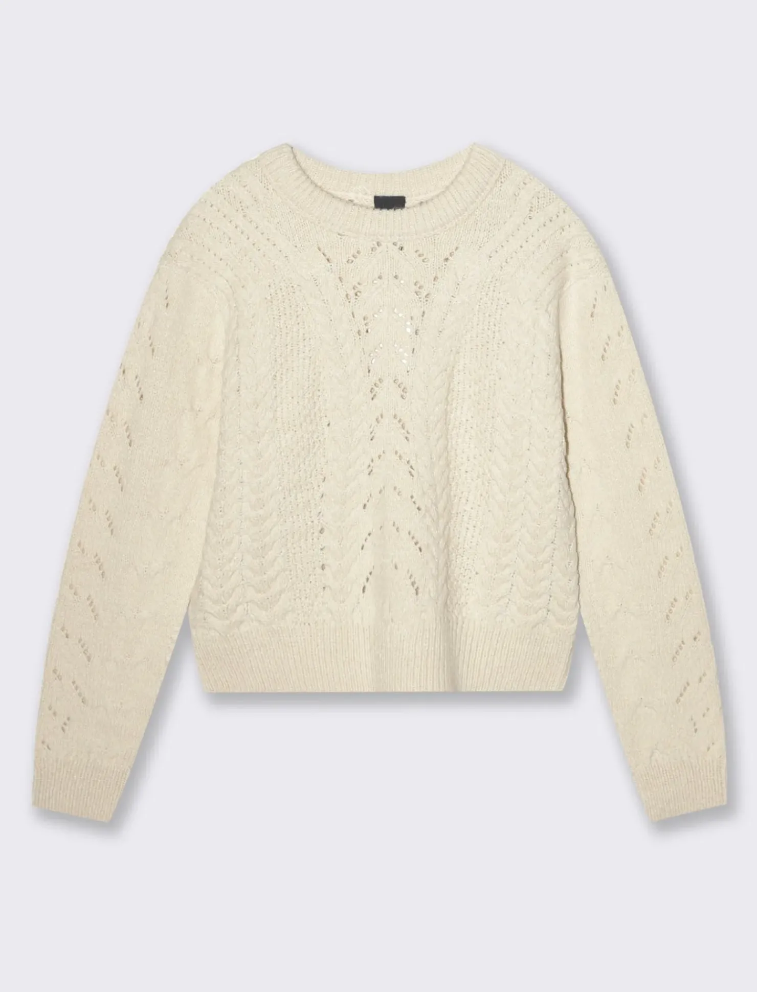 Piazza Italia Maglia girocollo manica lunga e fondo a costa elastica – Avorio Beige Clearance