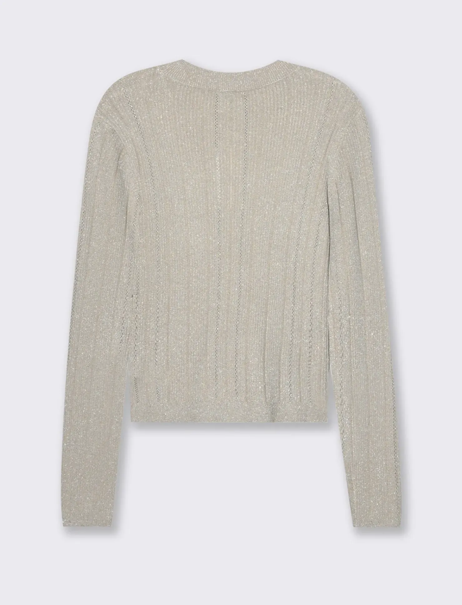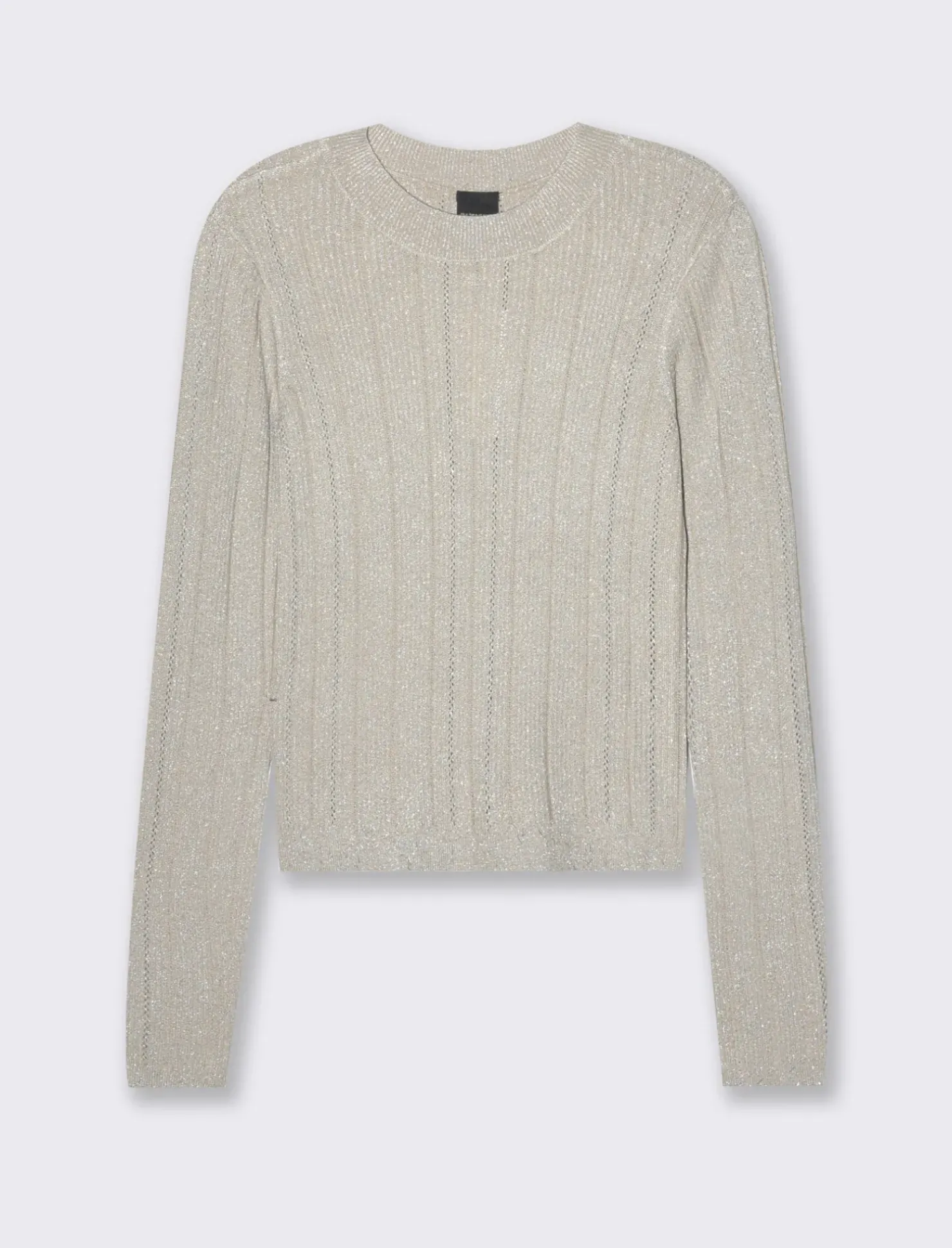 Elegante maglia girocollo a manica lunga per donna, realizzata con un raffinato filo metallizzato che cattura la luce in modo delicato. La vestibilità slim esalta la silhouette, rendendola ideale per ogni occasione, dal lavoro a un’uscita serale. I dettagli curati e il design moderno la rendono un capo versatile, facilmente abbinabile a jeans o gonne, per uno stile sempre al passo con le tendenze. Il prodotto è di colore Bianco perla