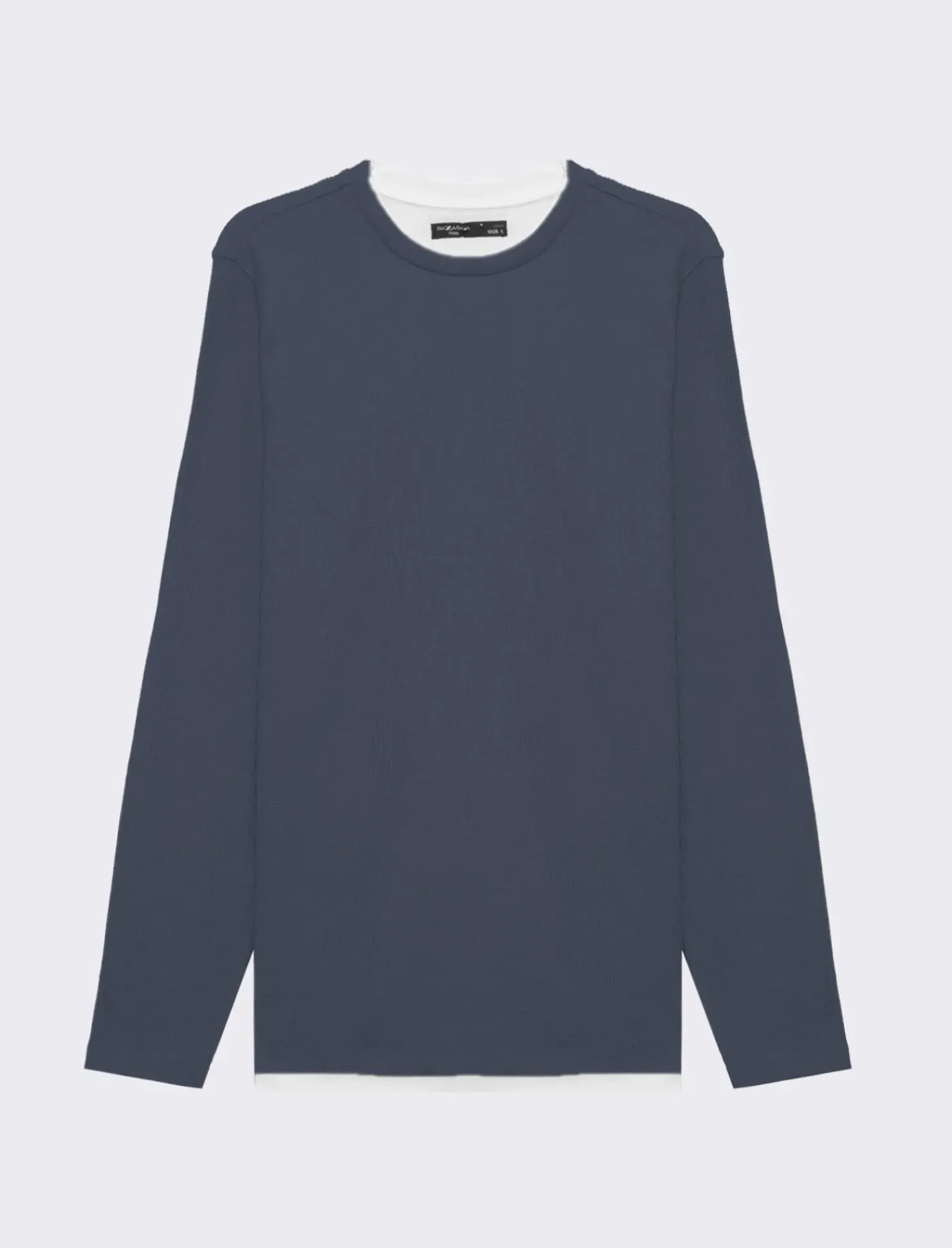 Piazza Italia Maglia girocollo struttura waffel in misto cotone. Regular fit. Dettaglio di bordino a contrasto in – Avion Blu Shop