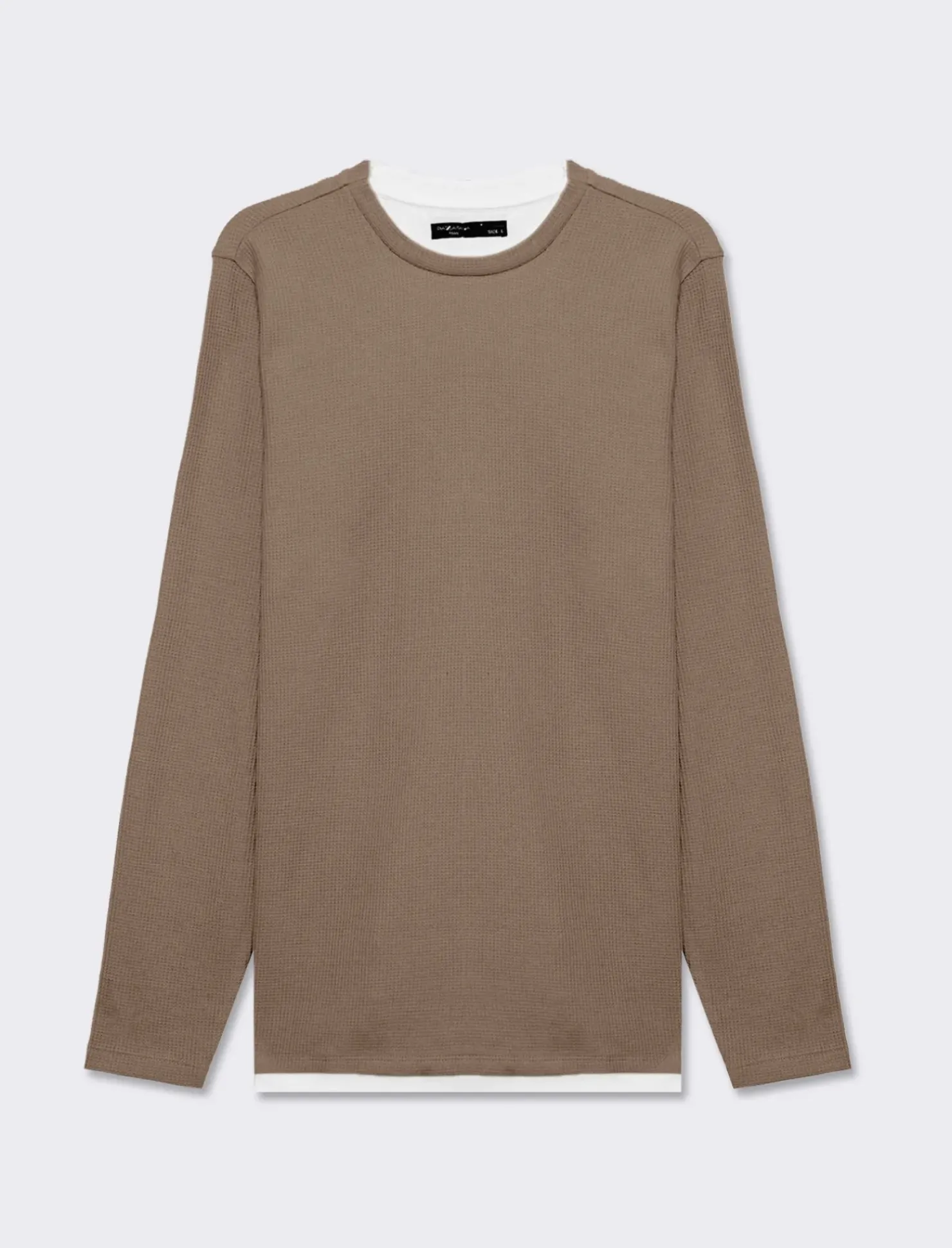 Maglia girocollo struttura waffel in misto cotone, ideale per un look casual e confortevole. Il taglio regular fit assicura una vestibilità comoda e adatta a ogni occasione. Il dettaglio del bordino a contrasto in jersey al collo aggiunge un tocco di originalità e stile al capo. Perfetta per un uomo che ama essere alla moda senza rinunciare al comfort. Il prodotto è di colore Verde kaki
