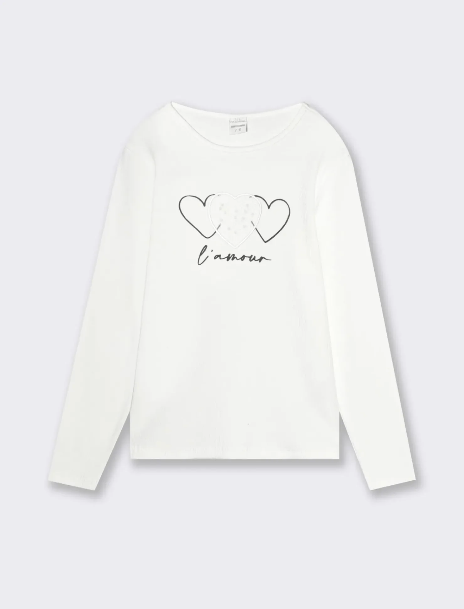 Piazza Italia Maglia in costina con applicazione perline sul davanti con rete e stampa – sporco Bianco Sale