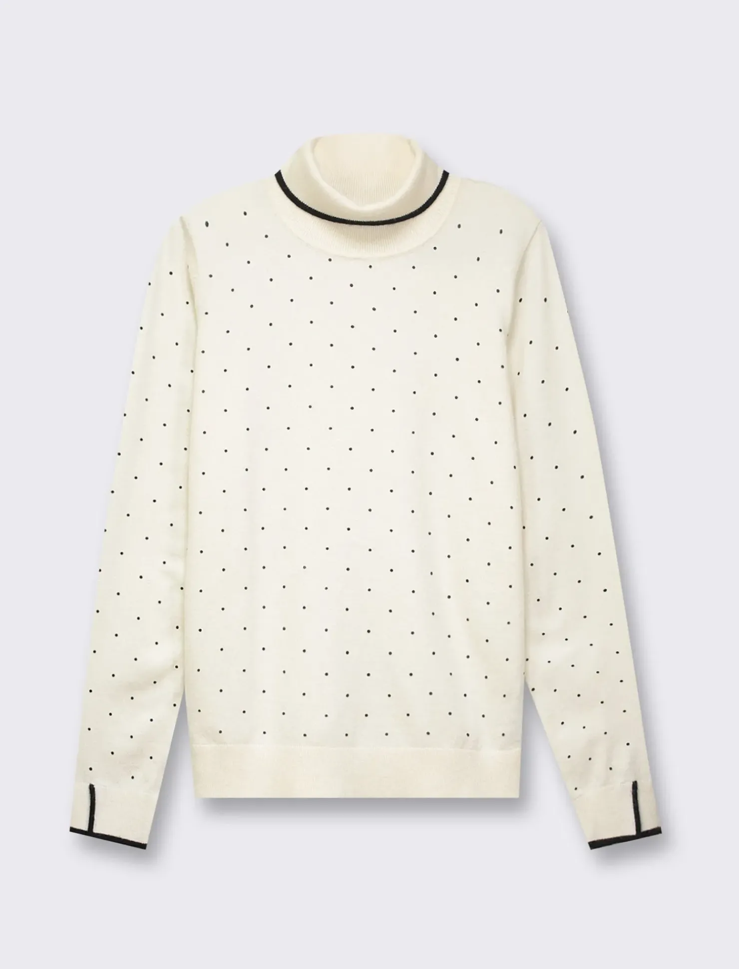 Maglia elegante per donna, realizzata in morbido filato, perfetta per le giornate più fresche. Il collo alto offre comfort e calore, mentre il motivo floccato stampato aggiunge un tocco di originalità e stile. Disponibile in una palette di colori, questa maglia si adatta facilmente a diversi outfit, rendendola un capo versatile da indossare in ogni occasione, dal lavoro al tempo libero, senza rinunciare alla femminilità. Il prodotto è di colore Avorio