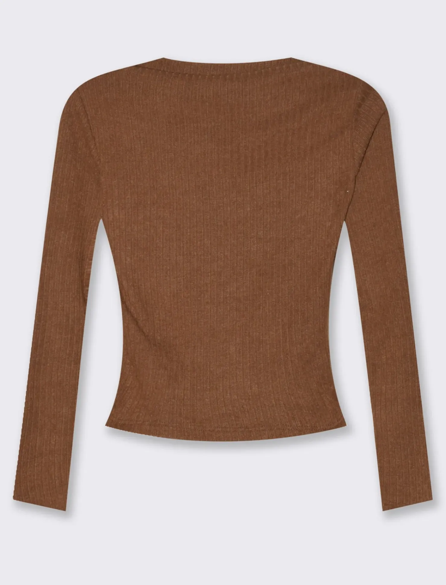 Piazza Italia Maglia manica lunga con scollo a barca vestibilità stretch – Cammello Beige Sale