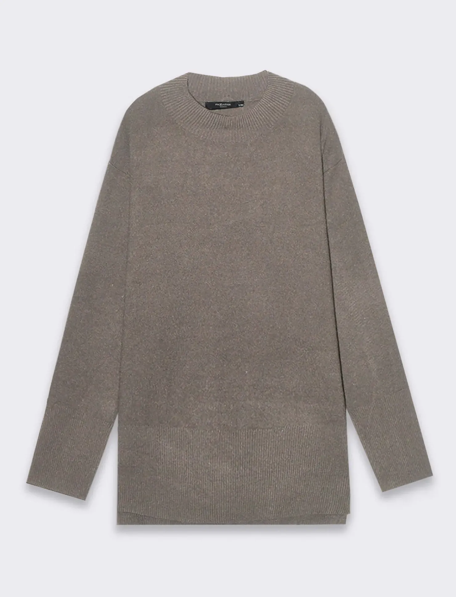 Piazza Italia Maglia manica lunga giro collo lavorazione punto milano – Tortora melange Grigio Shop