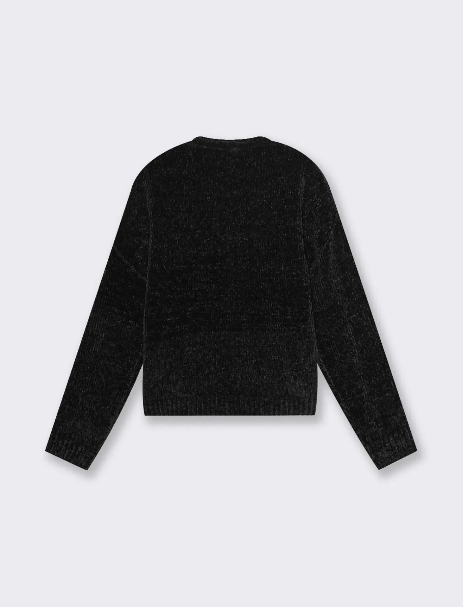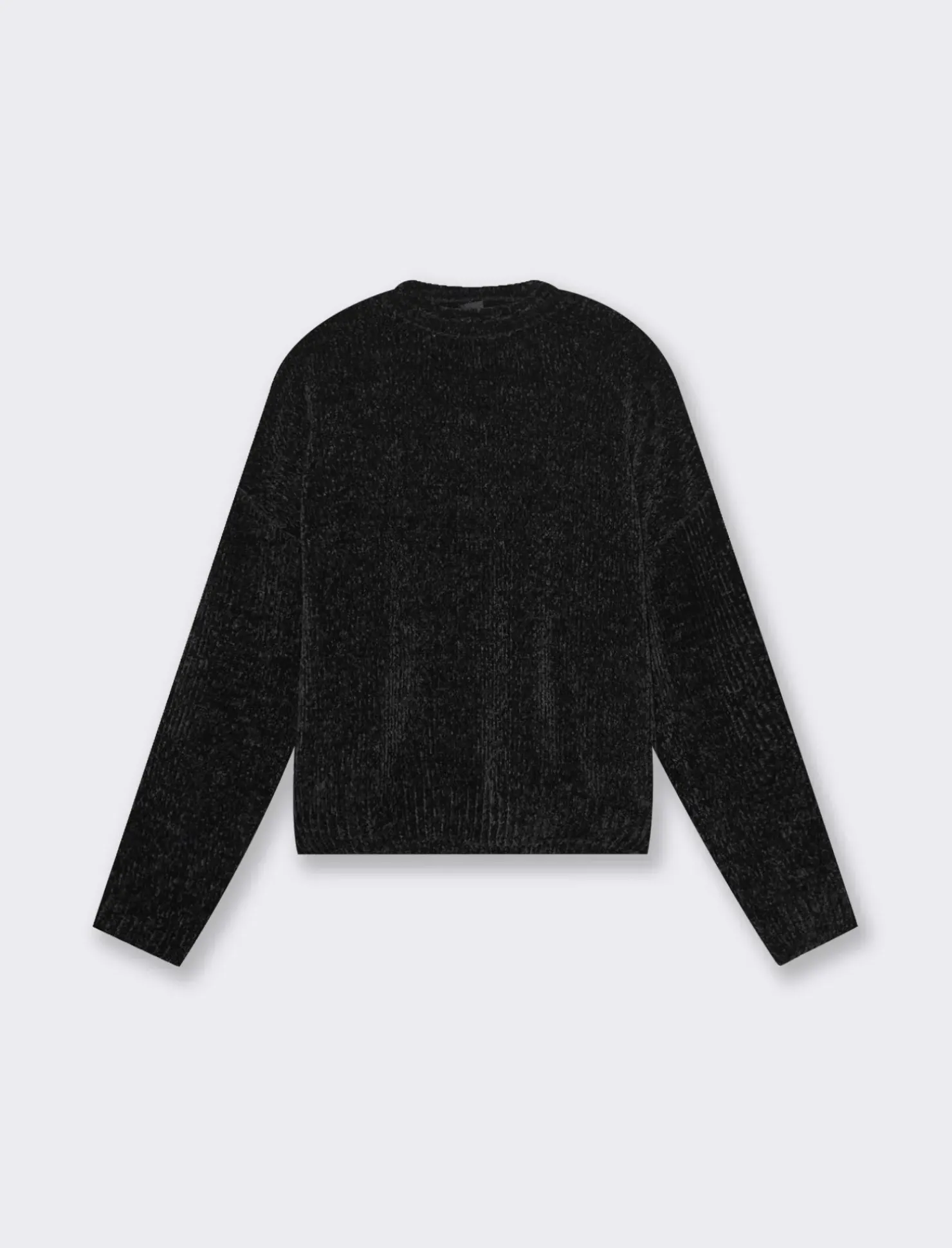 Piazza Italia Maglia manica lunga in ciniglia con giro collo taglio basic – Nero Sale