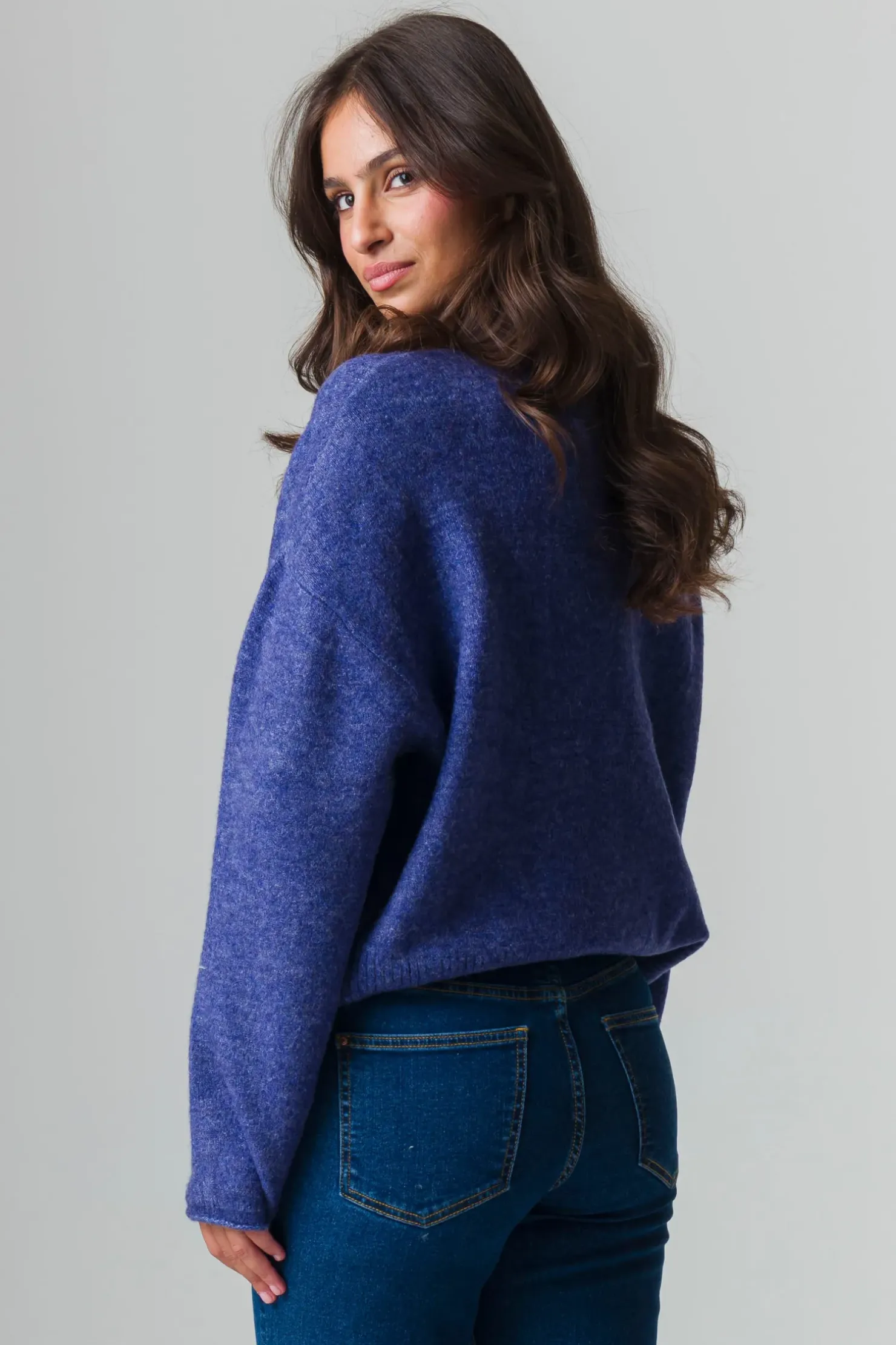 Piazza Italia Maglia manica lunga mezzo collo con bordo risvoltato – Mirtillo Viola Clearance