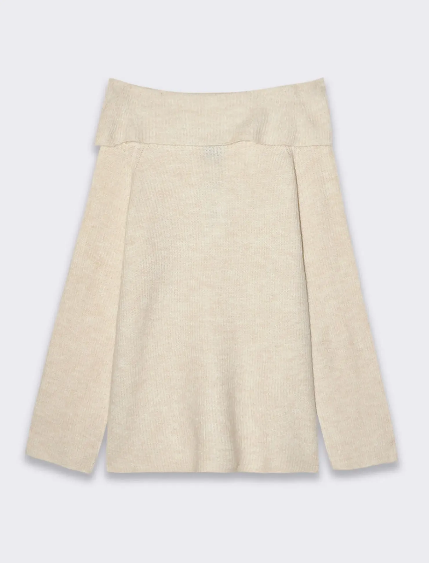 Piazza Italia Maglia manica lunga scollo risvoltato e spalle scoperte con vestibilità comoda – Beige corda Marrone Discount