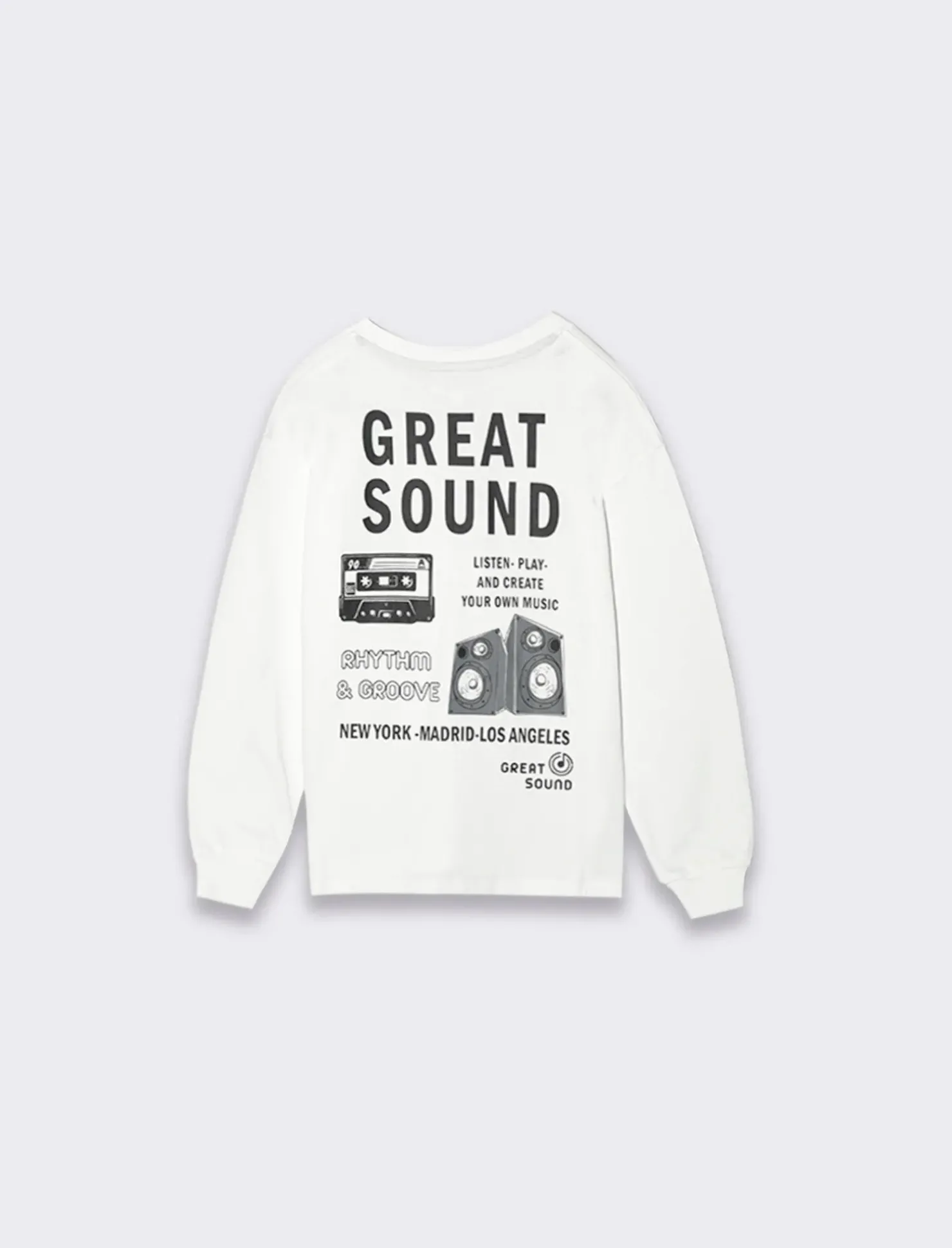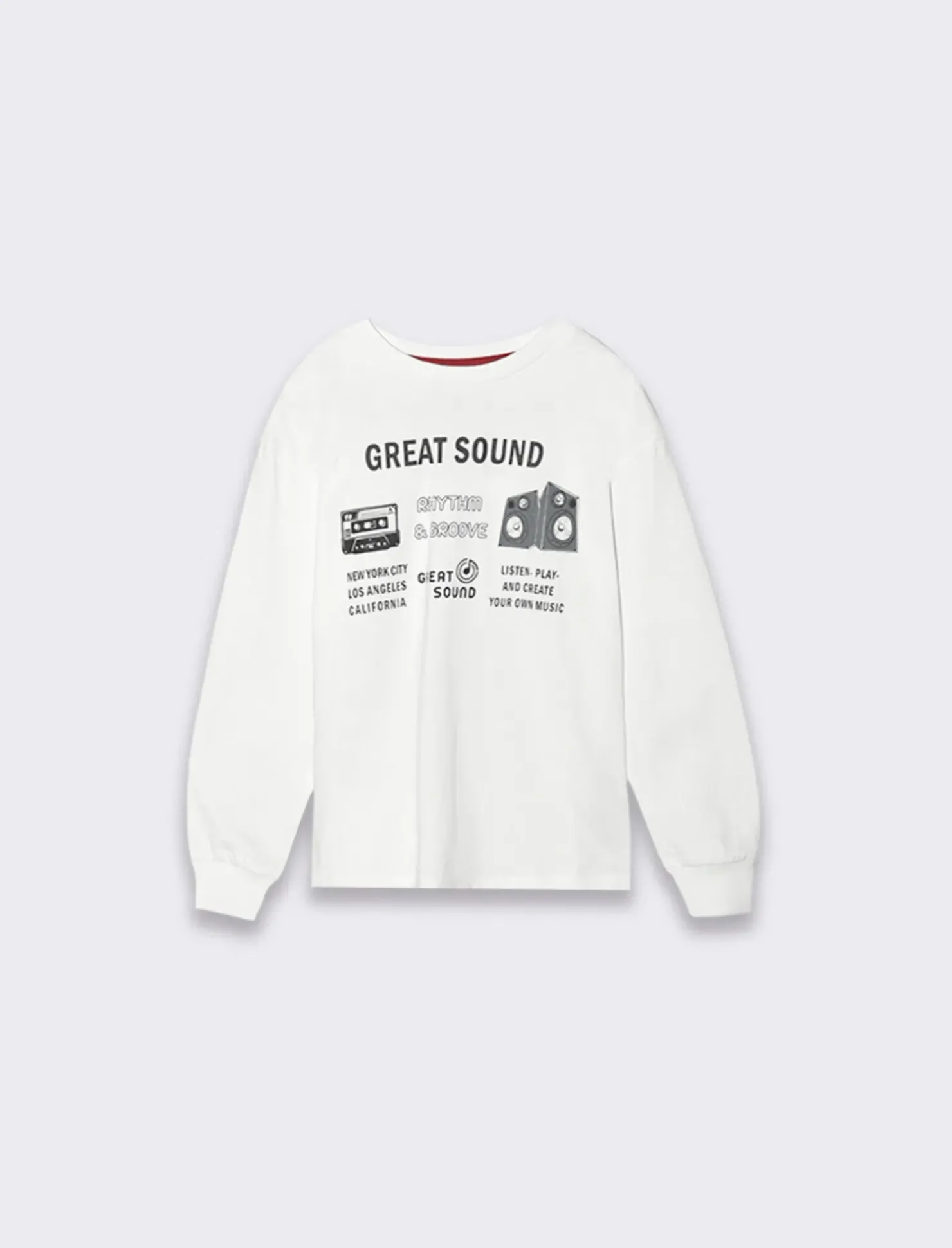 Piazza Italia Maglia maniche lunga e stampa frontale – Bianco panna New