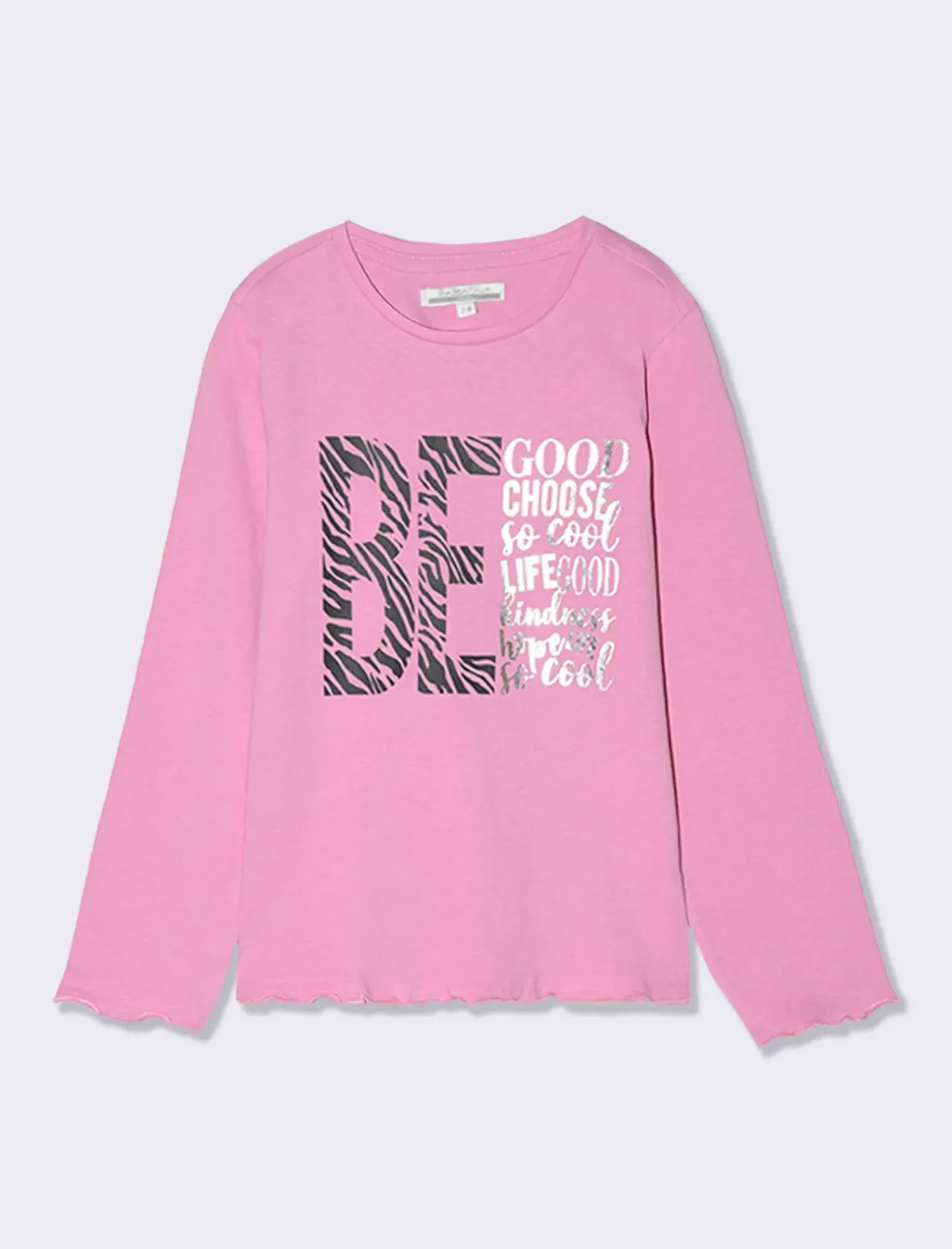 Piazza Italia Maglia maniche lunghe con orlo ondulato e stampa frontale effetto lucido – Rosa Sale