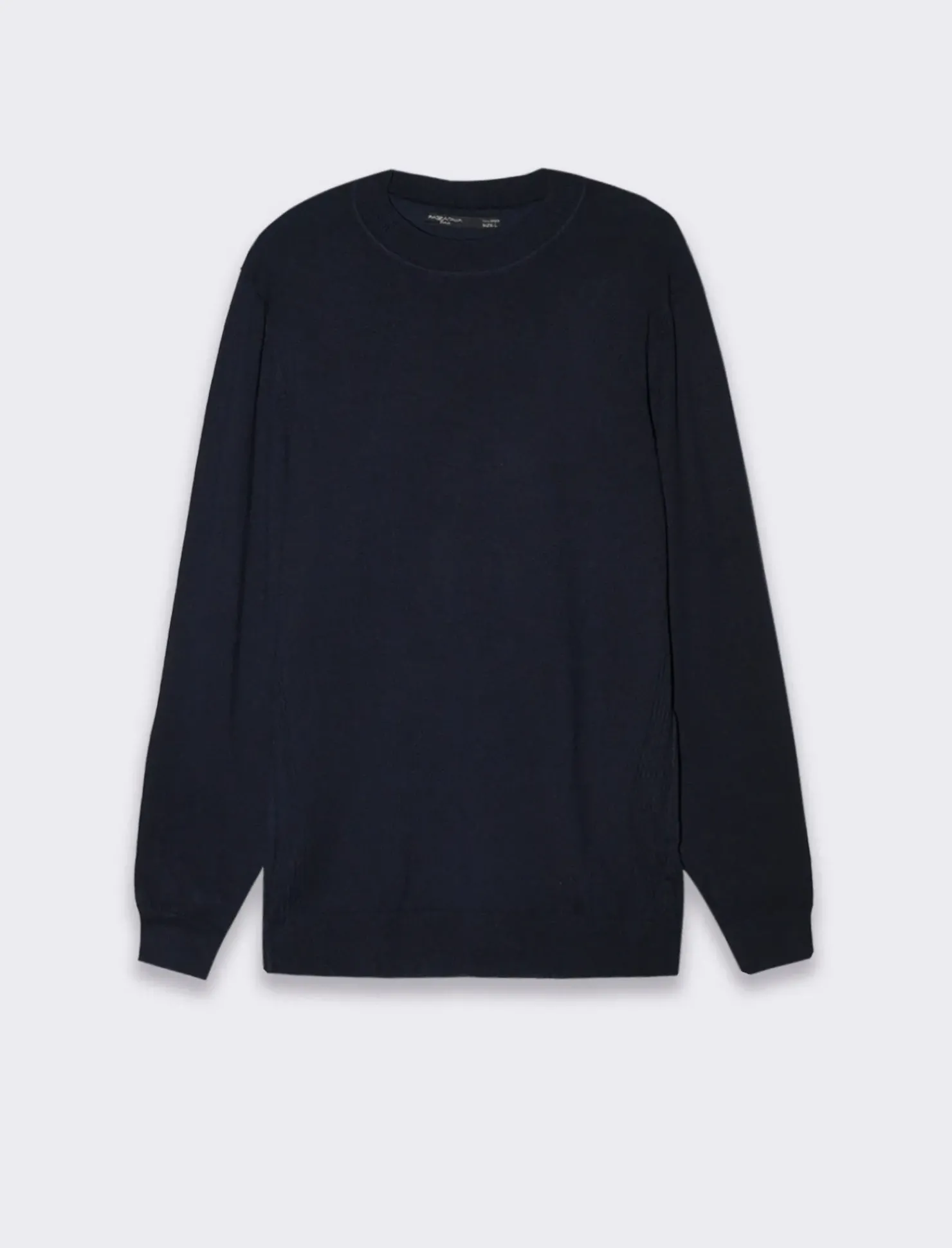 Piazza Italia Maglia mezzo collo lavorazione a coste sui fianchi slim fit. – Blu Shop