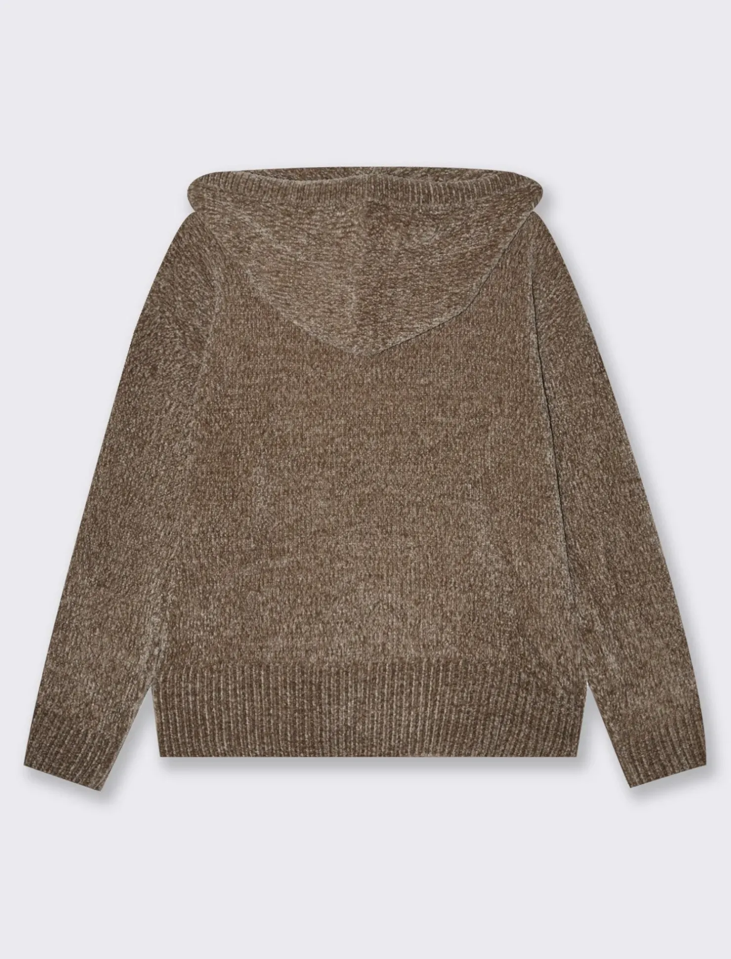 Maglia modello felpa in ciniglia per donna, un capo d’abbigliamento che unisce comfort e stile. Caratterizzata da un morbido tessuto in ciniglia, offre una sensazione di calore e avvolgenza. Il cappuccio aggiunge un tocco di praticità, mentre le tasche a marsupio sono perfette per riporre piccoli oggetti. I polsi e il fondo a costa elastica garantiscono una vestibilità confortevole e una silhouette elegante. Il prodotto è di colore Grigio tortora