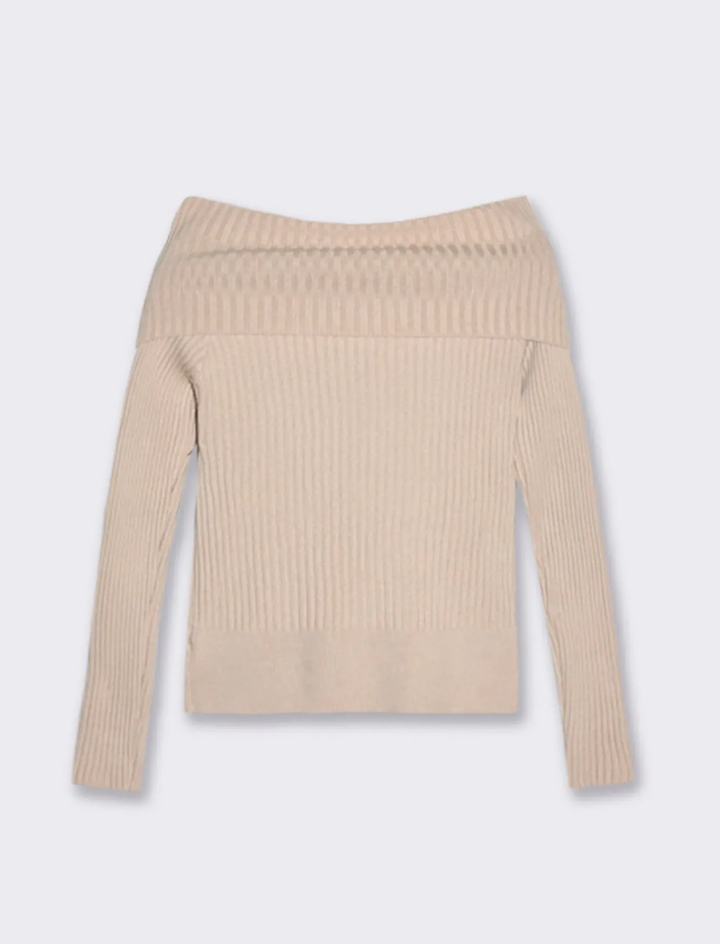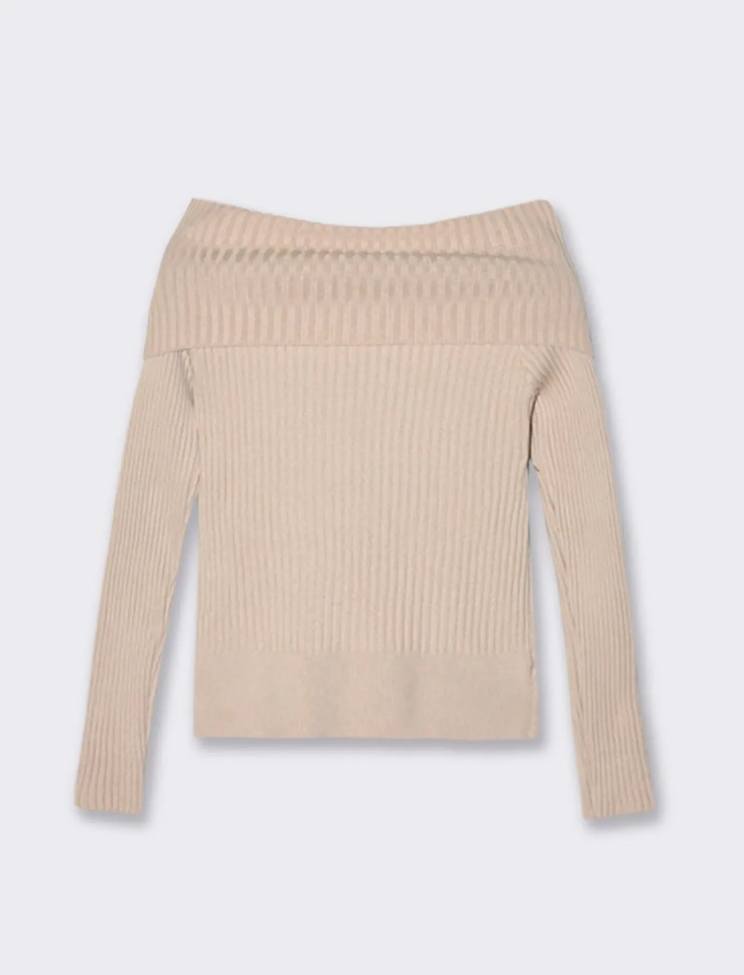 Maglia scollo a barca in costina Il prodotto è di colore Beige
