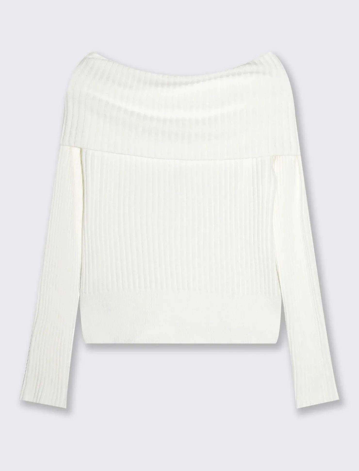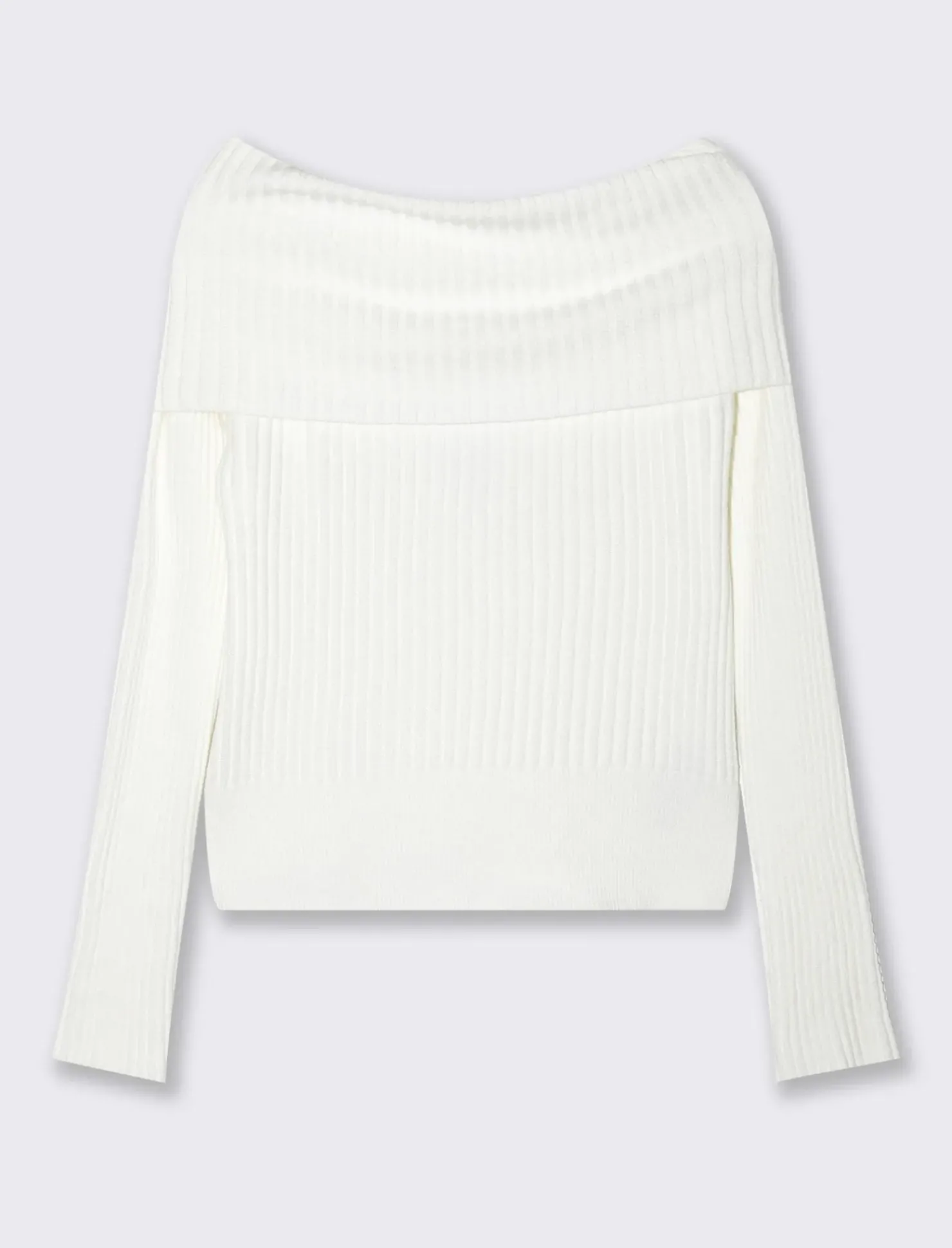 Maglia scollo a barca in costina Il prodotto è di colore Bianco latte
