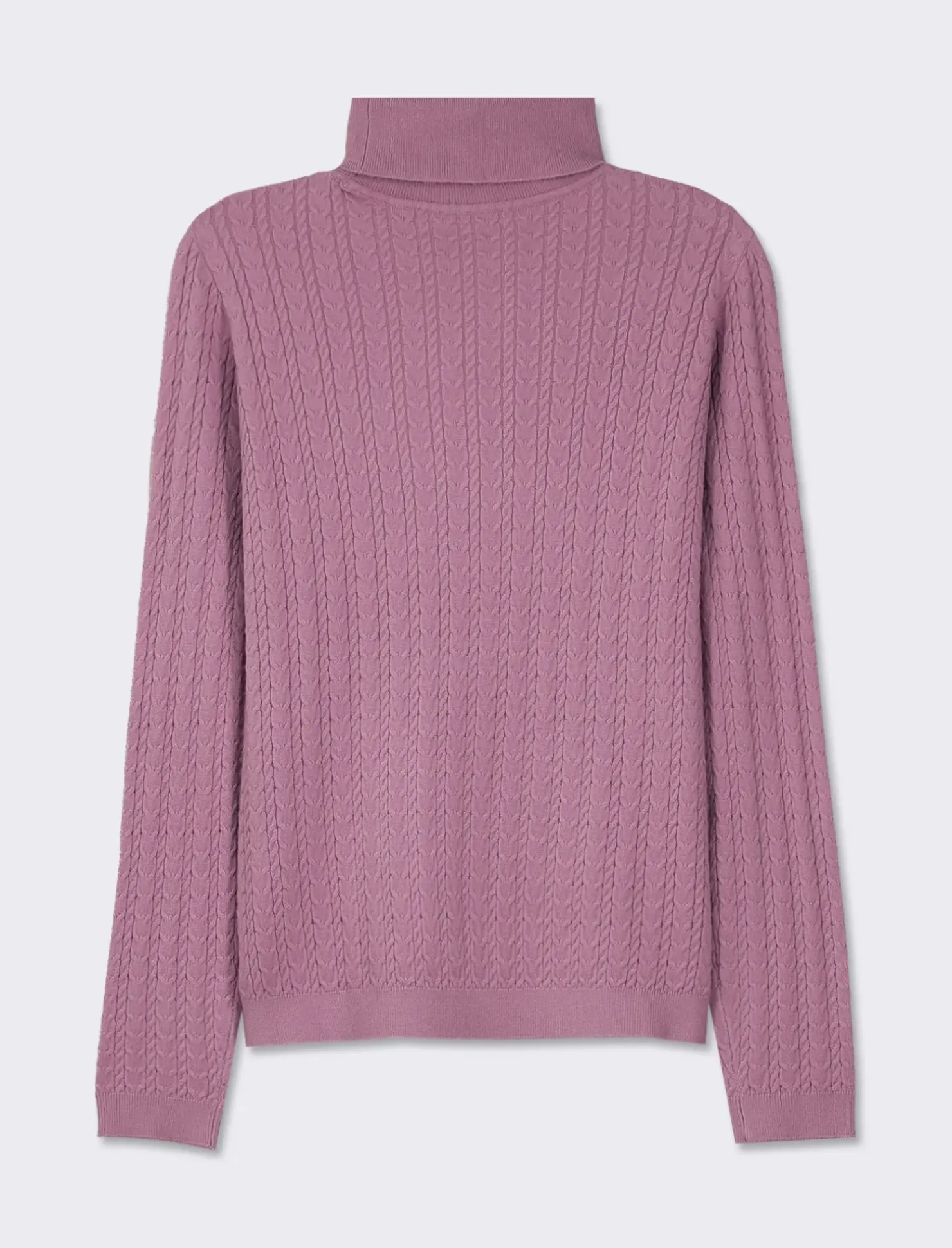 Piazza Italia Maglia slim in morbido filato collo lato e lavorazione trecce – malva Viola Outlet