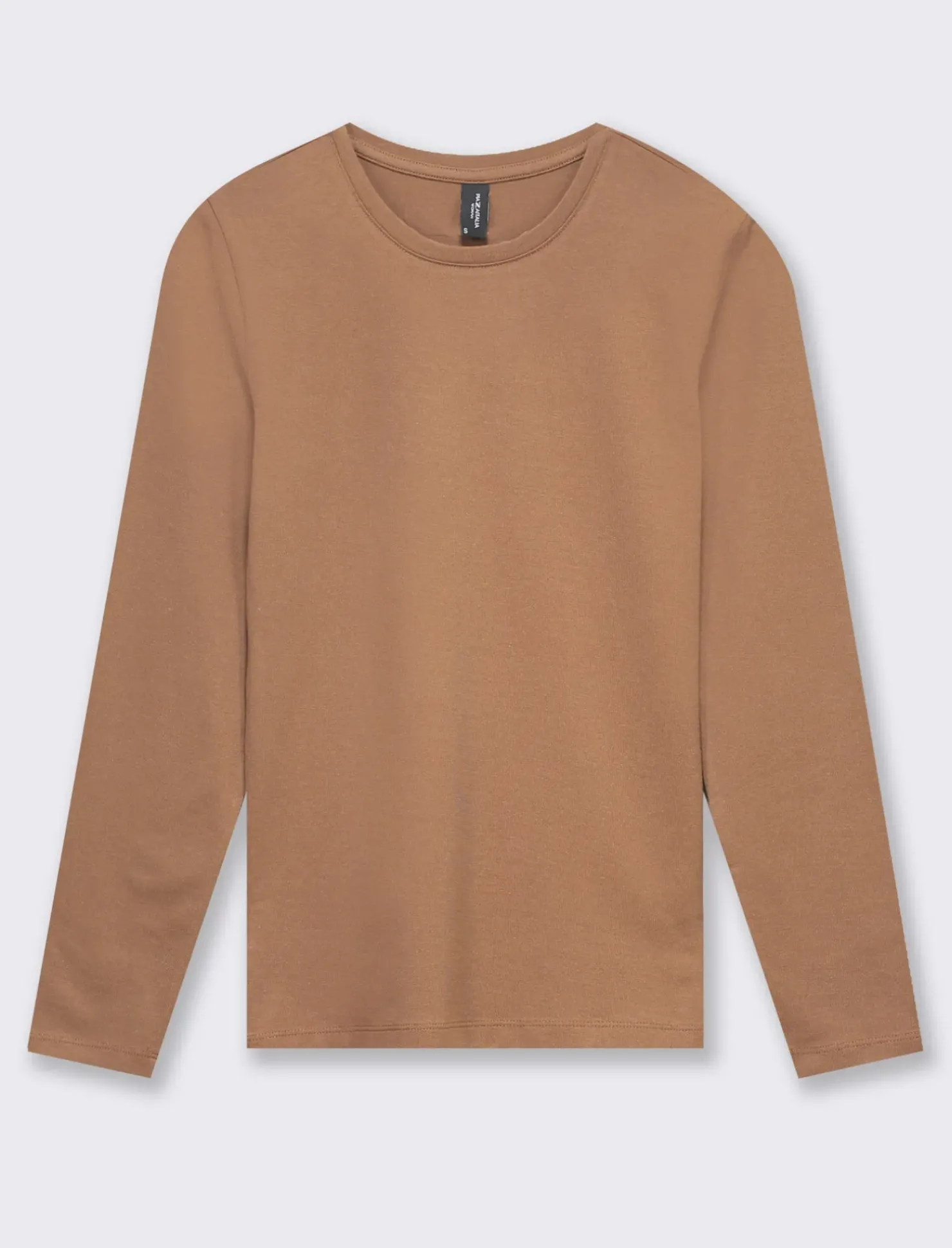 Maglietta basic in jersey donna: un capo essenziale per il tuo guardaroba. Realizzata in tessuto elastico, questa maglietta a manica lunga è perfetta per ogni occasione. Il taglio girocollo e la vasta gamma di colori disponibili la rendono un capo versatile e facile da abbinare. Il prodotto è di colore Marrone tabacco