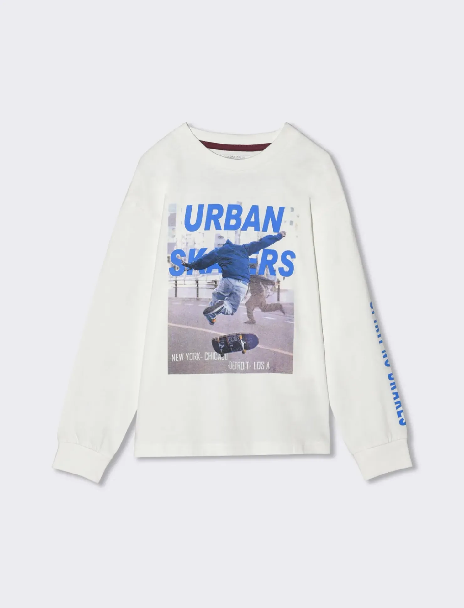 Piazza Italia Maglietta modello maniche lunghe con stampa – sporco Bianco Shop