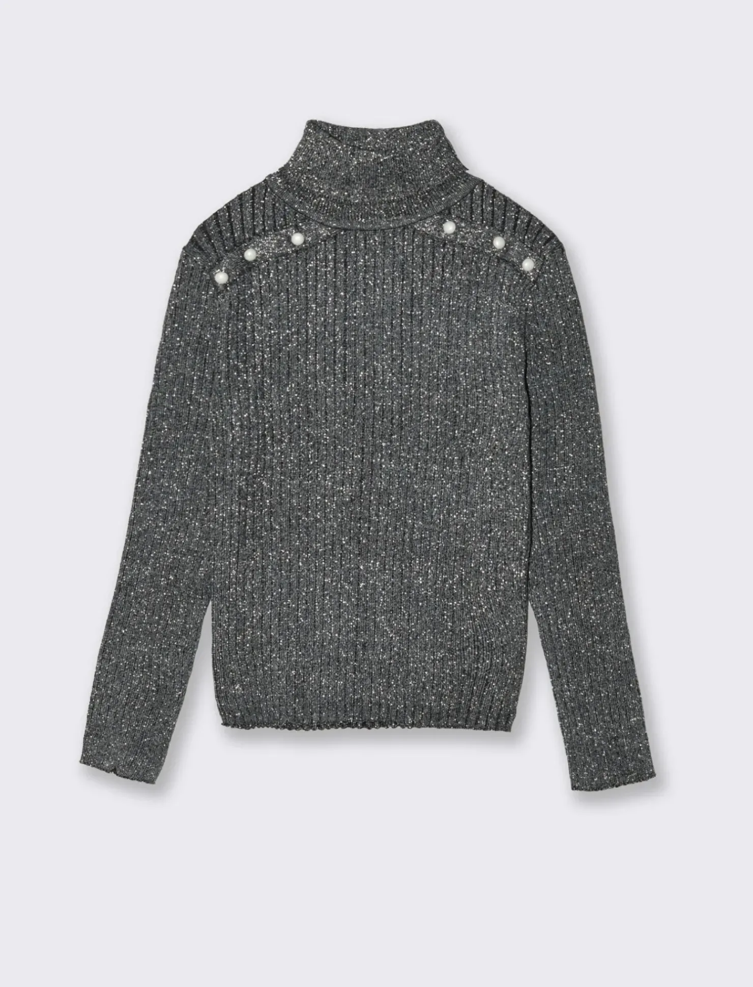 Maglia collo alto in costina per bambina, un maglioncino elegante e versatile, perfetto per le giornate fresche. Realizzato in costina elastica, offre una vestibilità comoda che permette libertà di movimento. Il filo metallizzato aggiunge un tocco di brillantezza, mentre i bottoni decorativi a mezza perla conferiscono un dettaglio raffinato. Ideale per essere abbinato a jeans o gonne, è un capo che unisce stile e praticità, rendendo ogni outfit speciale. Il prodotto è di colore Nero