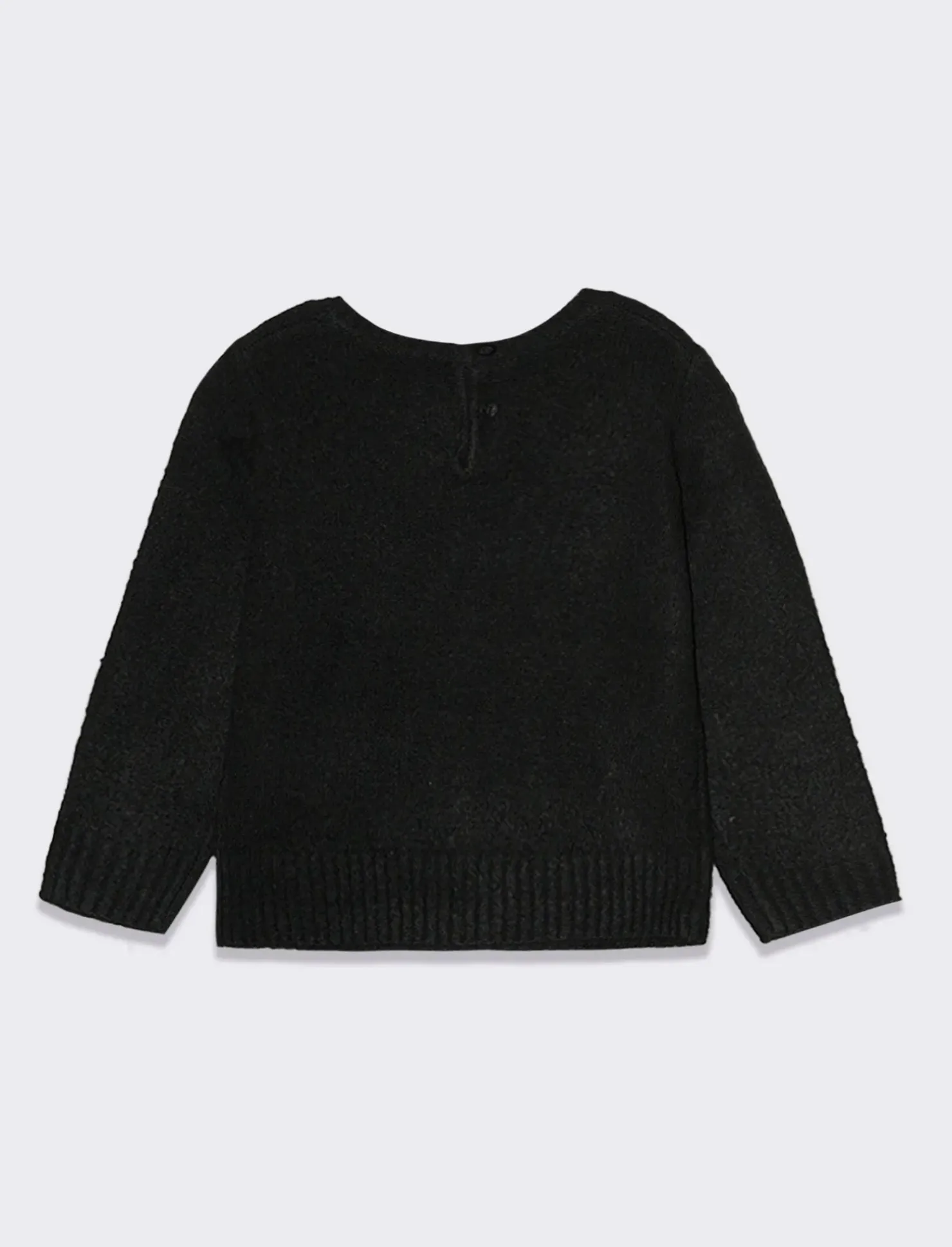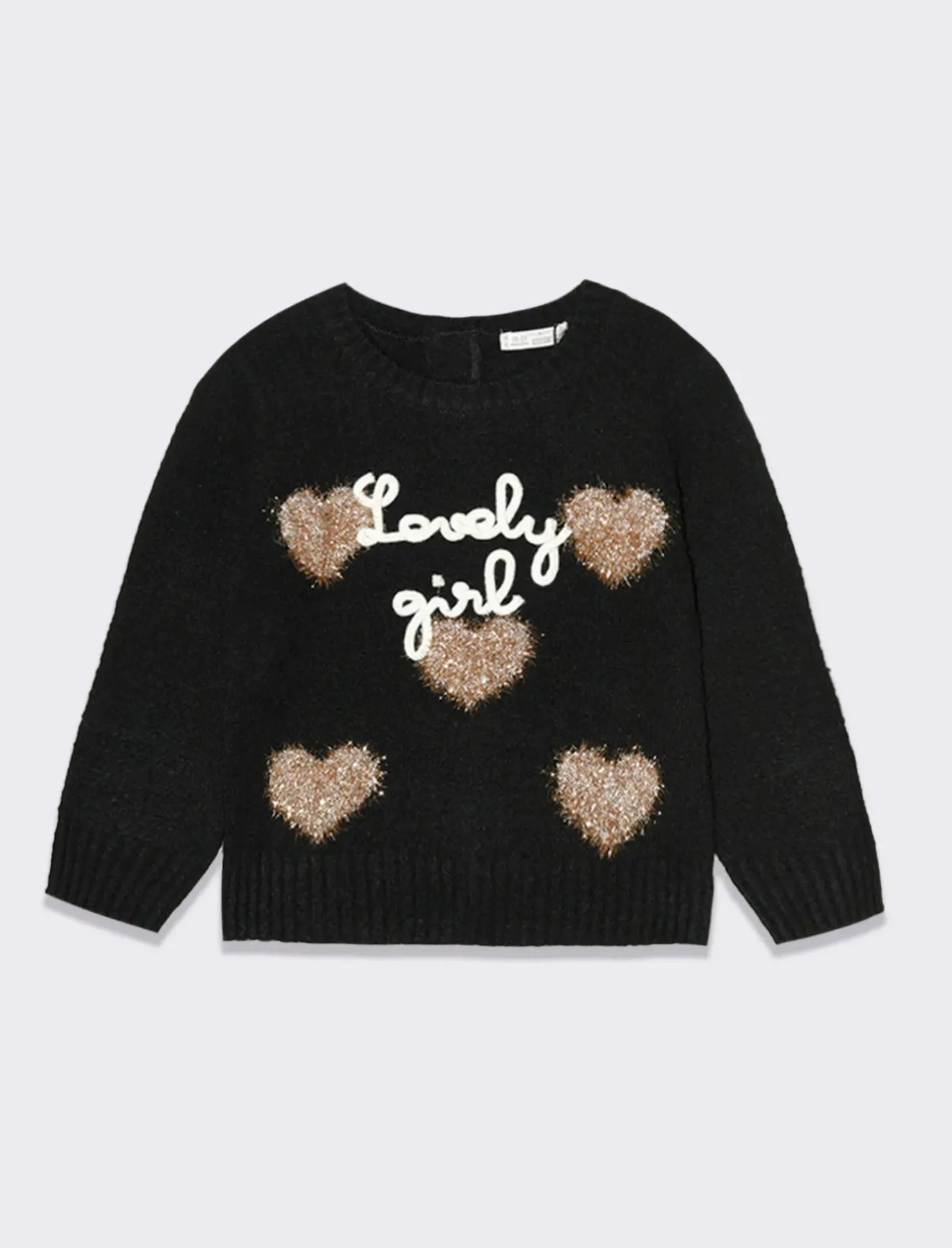 Maglioncino in acrilico morbidissimo, ideale per le giornate più fresche. Con inserti in lurex che lo rendono luminoso e adatto anche alle serate più eleganti. Il ricamo frontale e i disegni brillanti lo rendono perfetto per le bambine che amano brillare. Il prodotto è di colore Nero