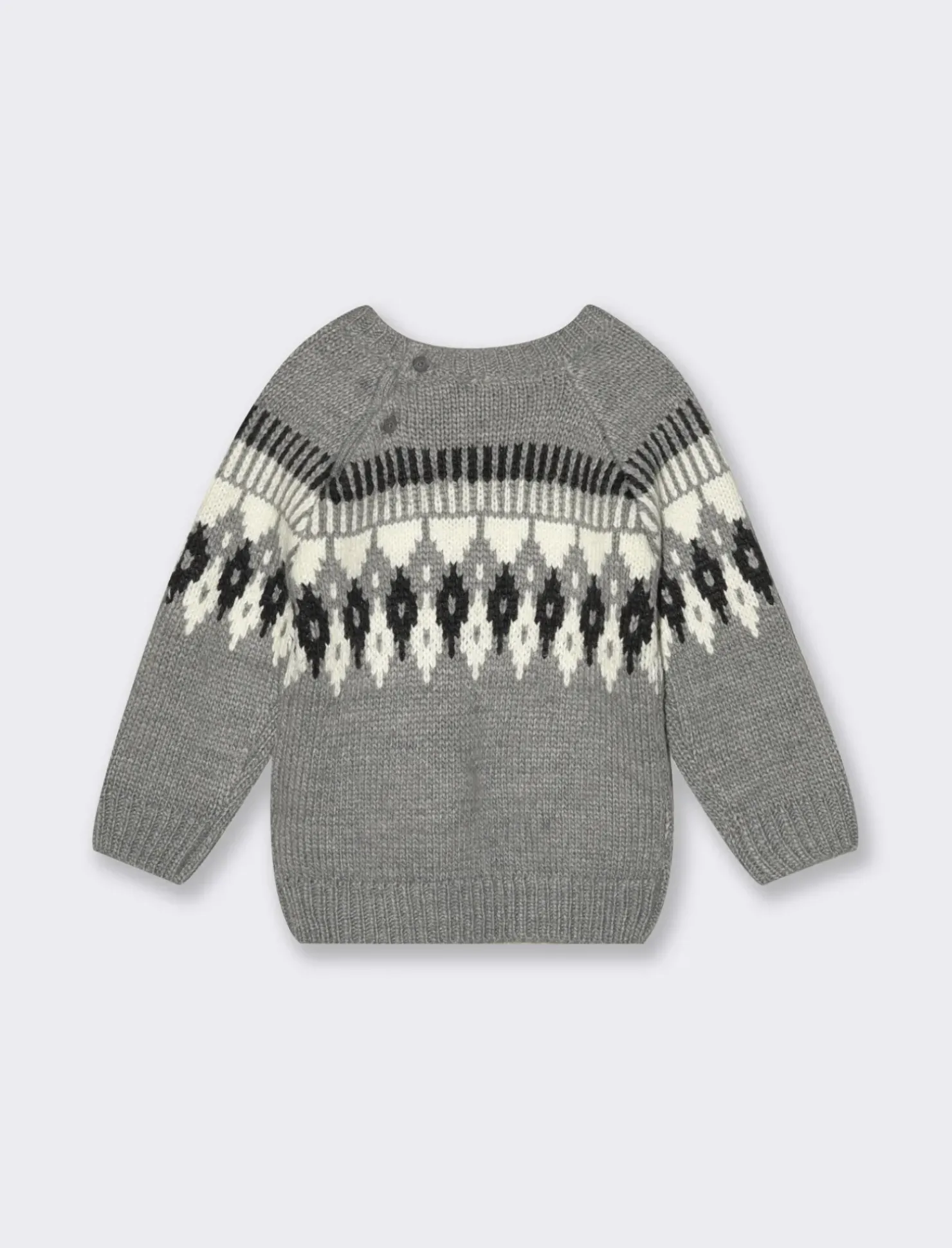 Il maglioncino caldo per neonato è un capo essenziale per le giornate più fredde. Realizzato con un morbido tessuto, offre comfort e calore, permettendo al tuo bambino di muoversi liberamente. Il design girocollo e il delizioso disegno ad intarsio sul davanti aggiungono un tocco di stile, rendendolo ideale per ogni occasione. Perfetto da abbinare a pantaloni o tutine, questo maglioncino è pensato per garantire il massimo del calore e della comodità. Il prodotto è di colore Grigio mel.