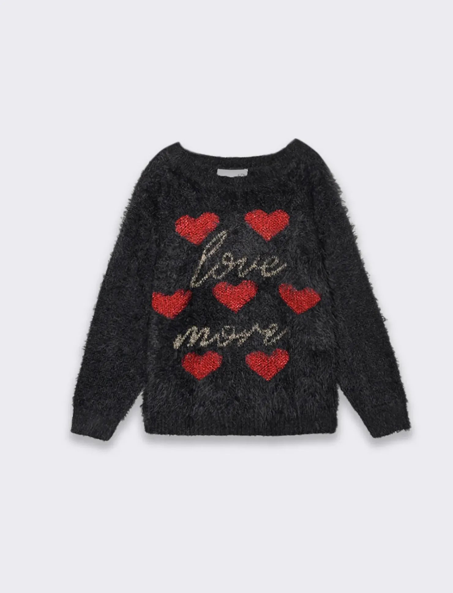 Piazza Italia Maglioncino girocollo da bambina con ricamo in filo metallizzato e decorazione jacquard a cuori – Nero Shop