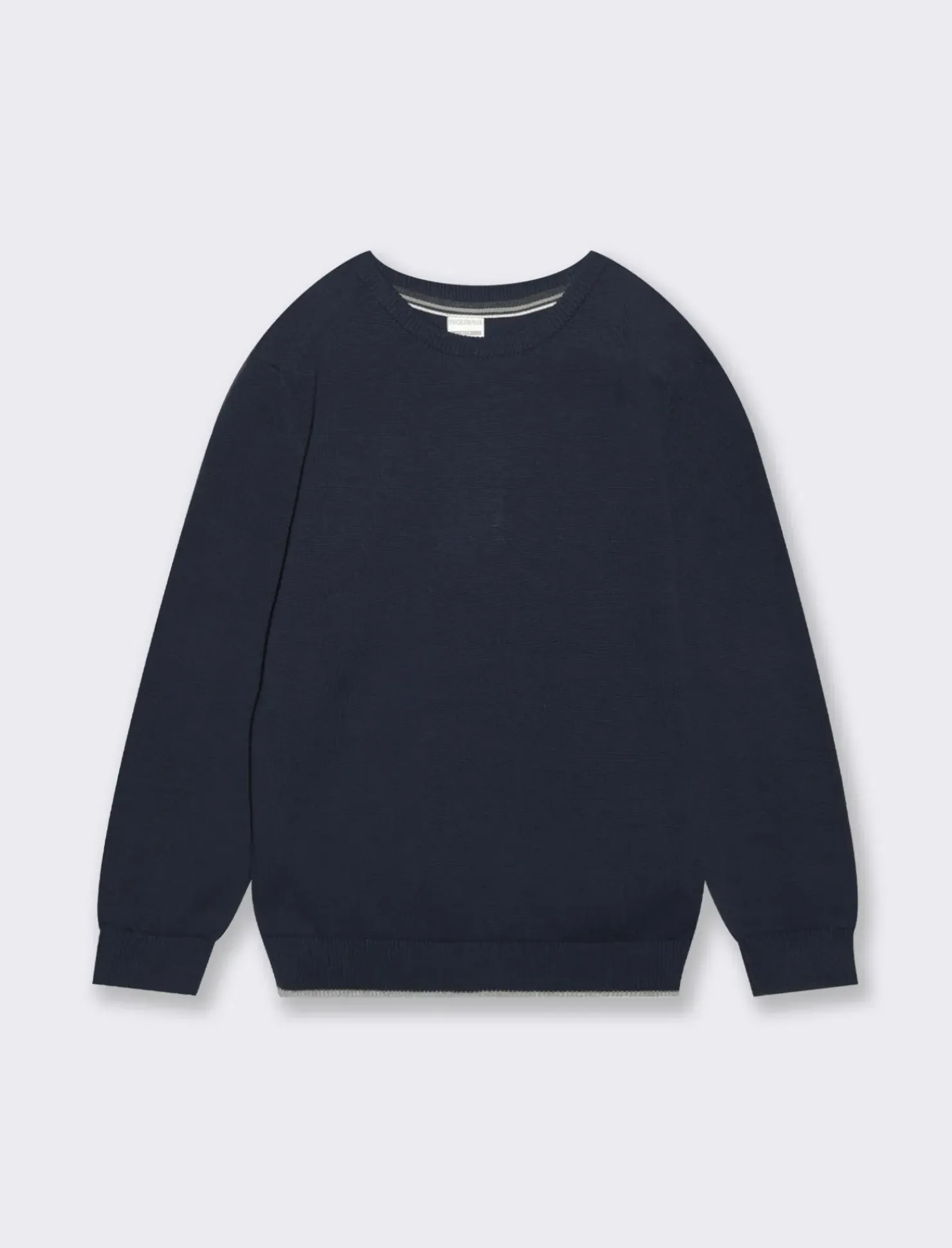 Piazza Italia Maglioncino tinta unita girocollo con ricamo frontale. Disponibile in diverse varianti colore – Blu Flash Sale