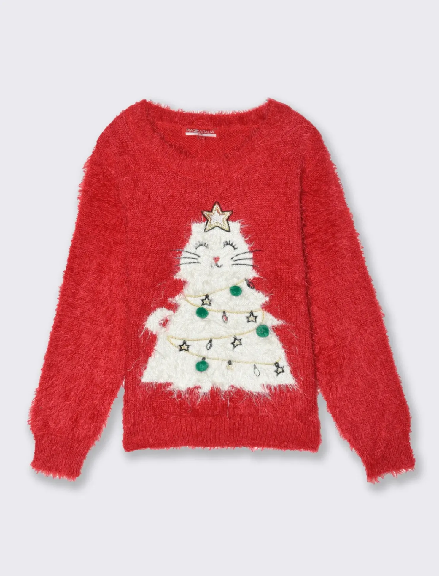 Piazza Italia Maglione girocollo morbido effetto peloso da bambina con ricami patch e pon pon – Rosso Outlet